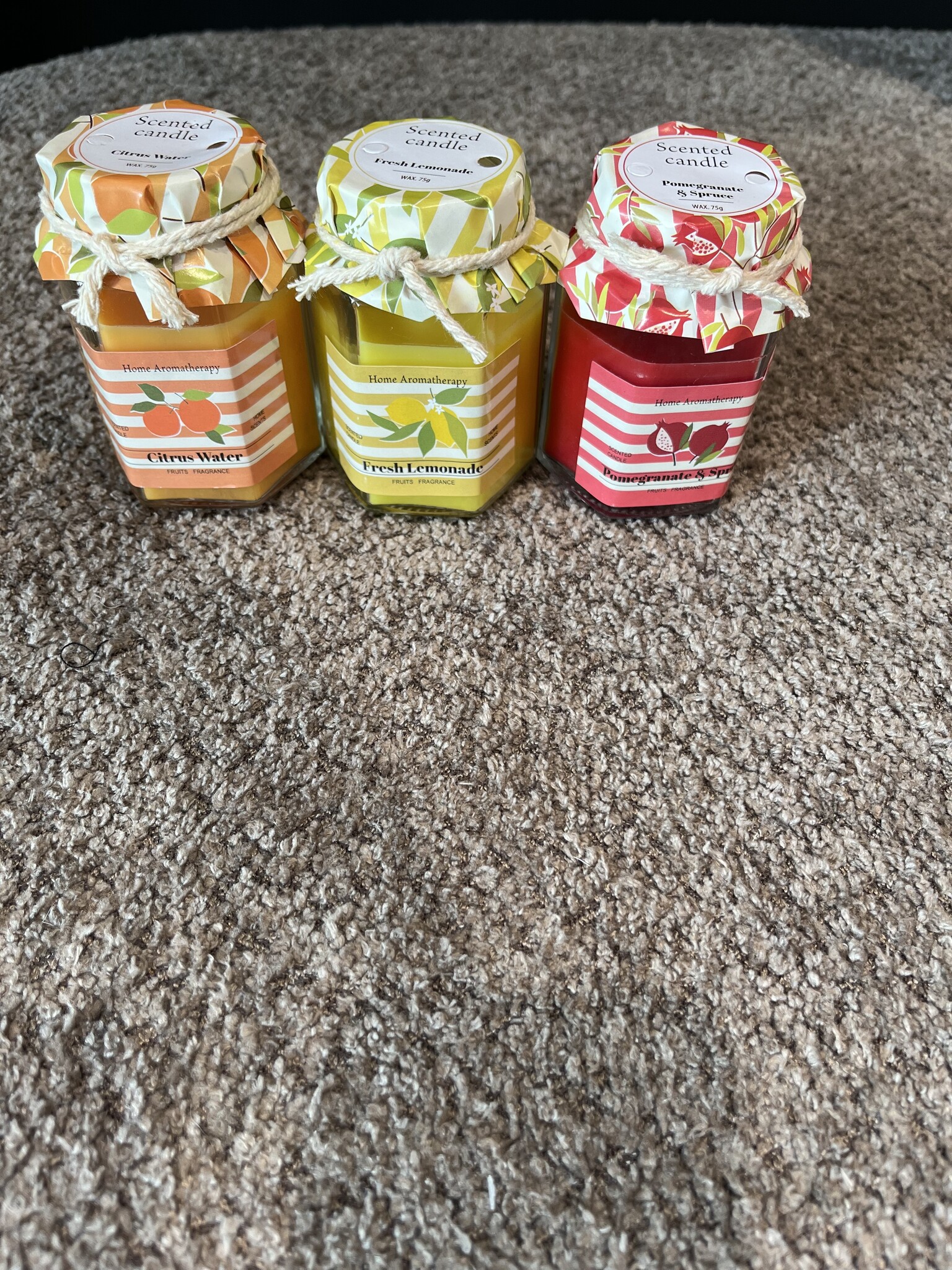 Laat je huis heerlijk ruiken met deze geurkaarsen in de heerlijke geuren : pomegrante, fresh lemon of citrus water. Je kunt de kaarsen plaatsen in je woonkamer, keuken, woonkeuken, slaapkamer of badkamer en toilet.