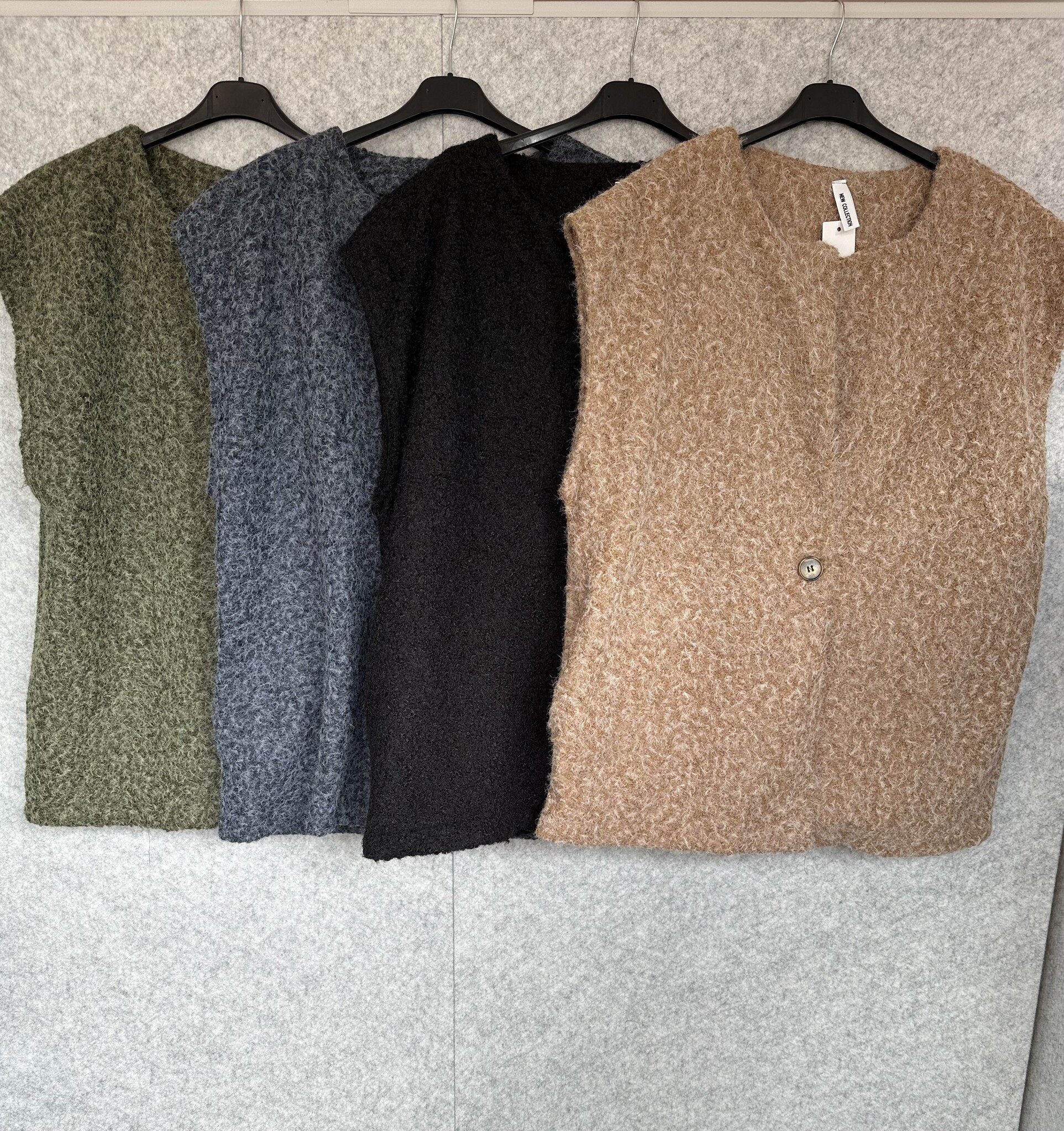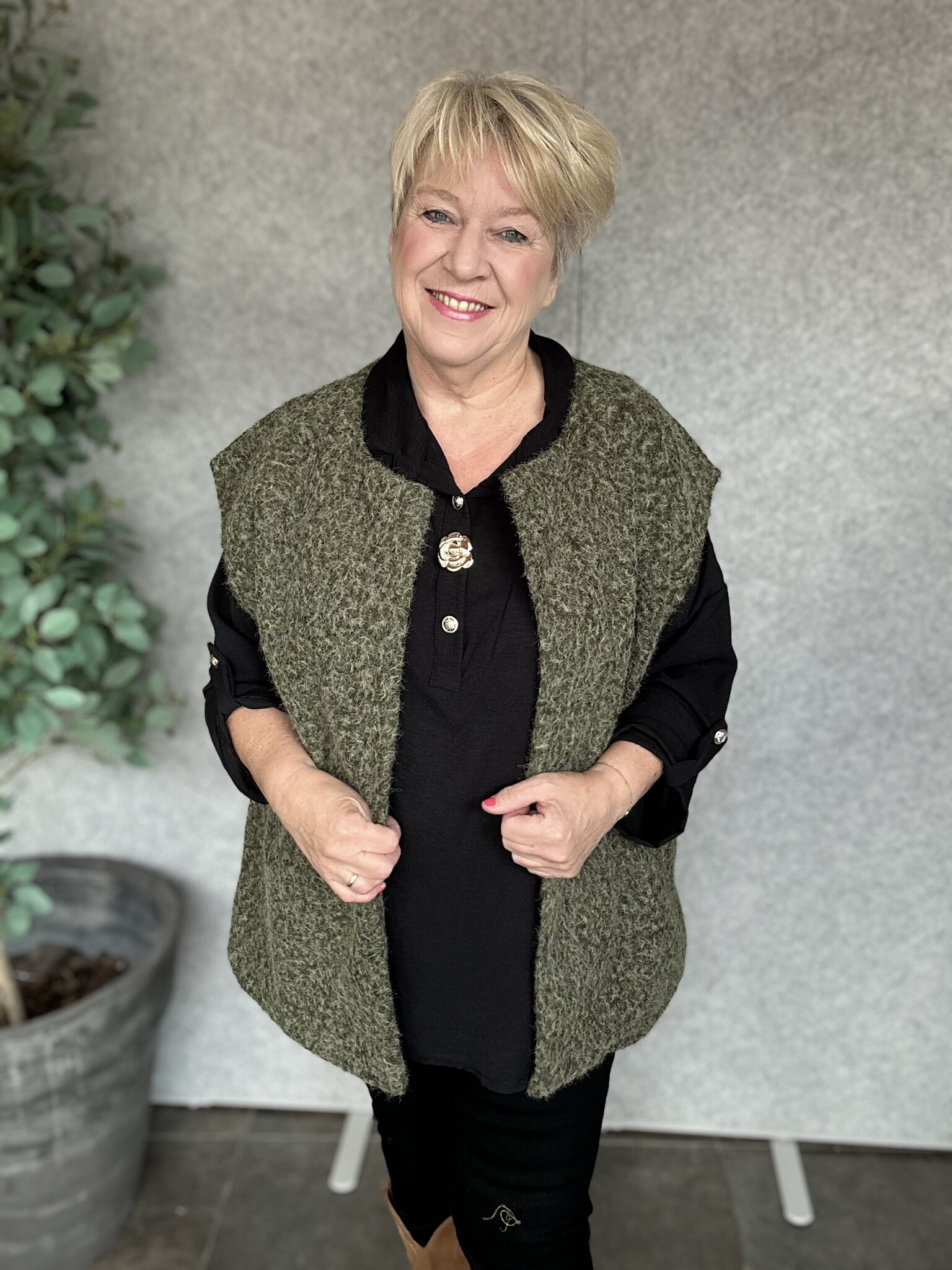 Super leuke gilet in teddy stof verkrijgbaar in verschllende kleurtjes. Kan gesloten worden doormiddel van knoopjes en is te dragen van maat 46 tot en met maat 54.
