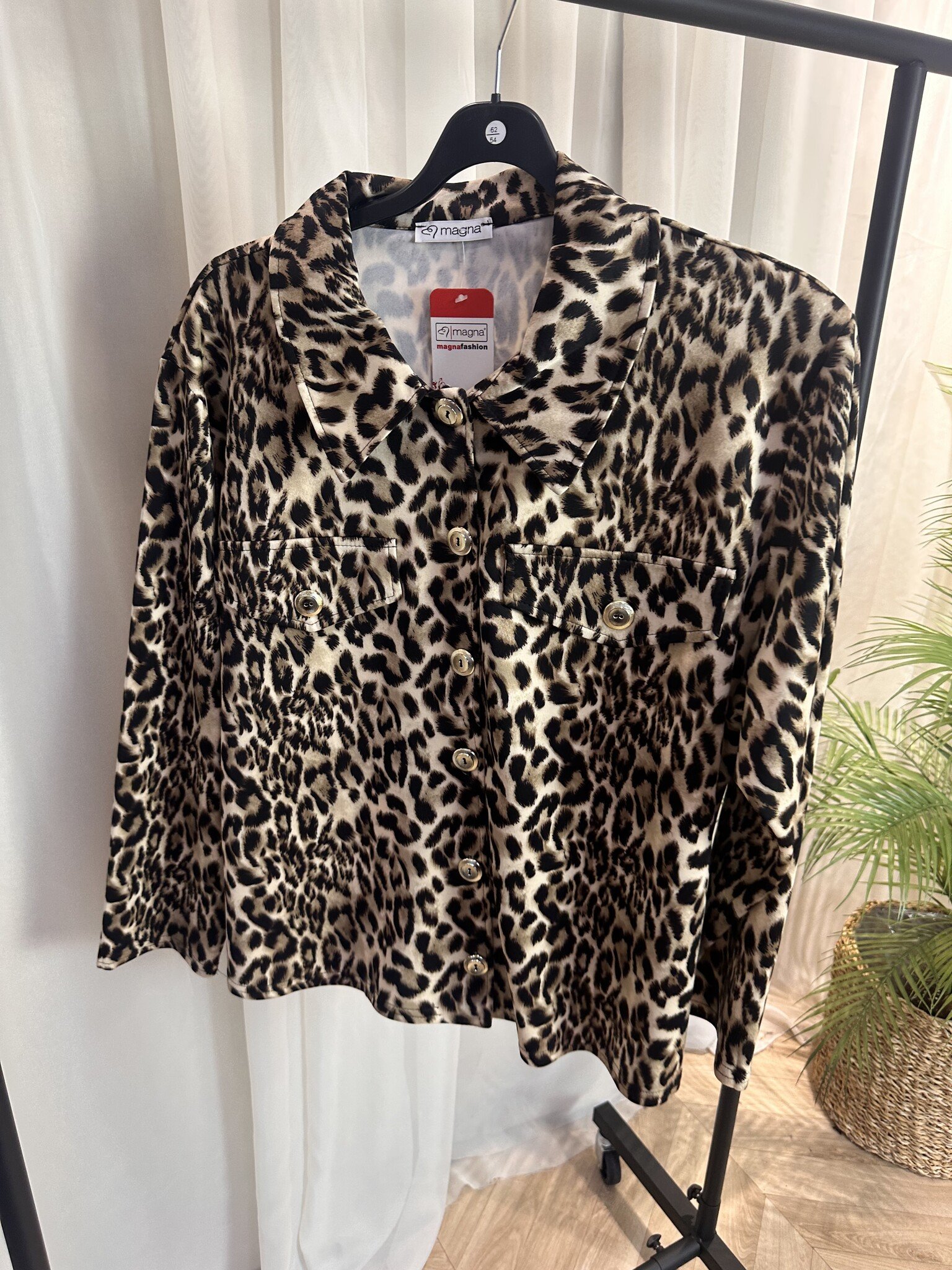 Voel je zelfverzekerd en stijlvol in dit geweldige jasje van Magna Fashion. Het heeft een mooie structuur of een opvallende print die elke outfit een luxe uitstraling geeft. De gouden knopen zorgen voor een chique detail, terwijl de vrouwelijke pasvorm mooi afkleedt en je figuur prachtig laat uitkomen.