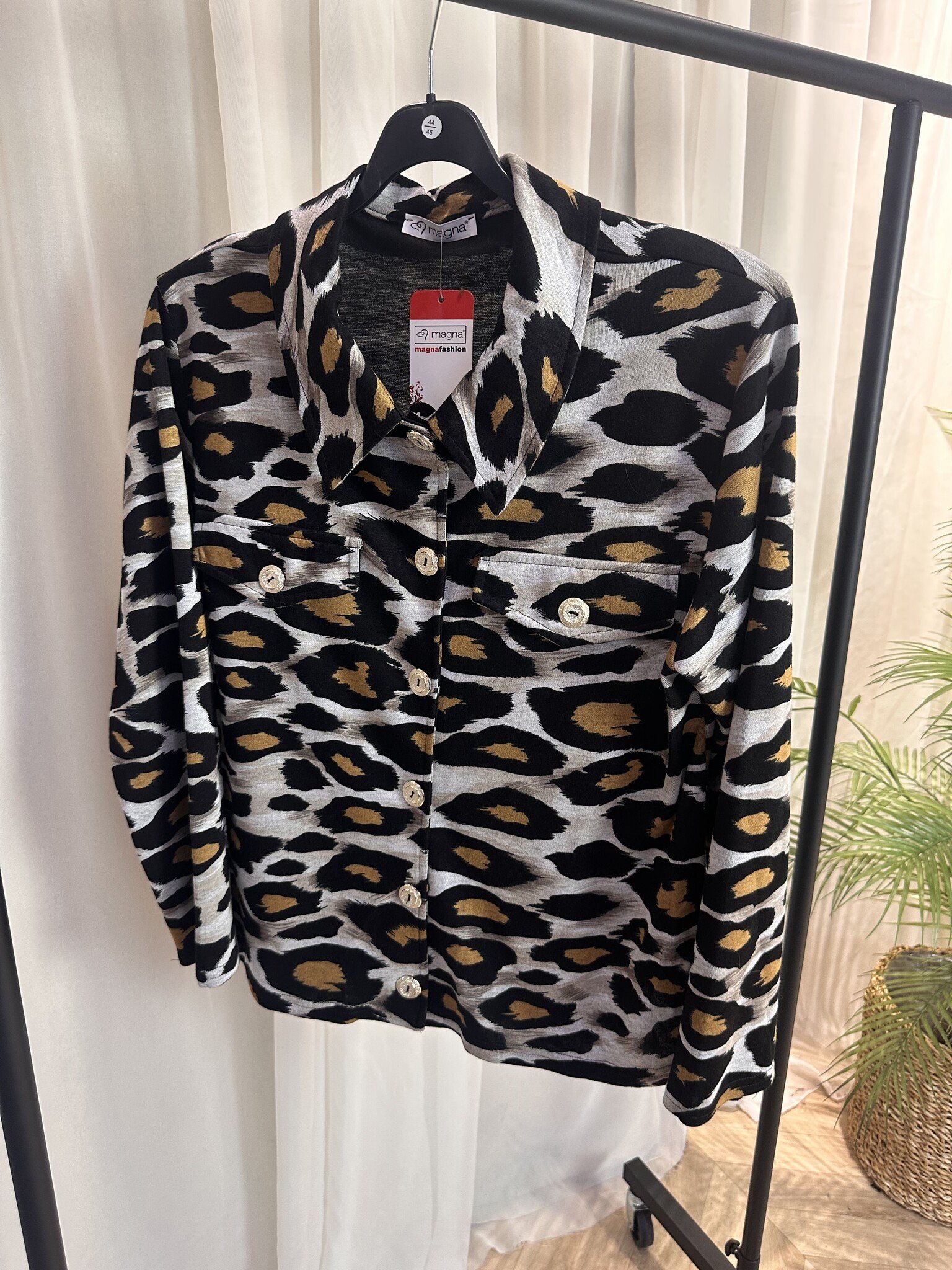 Voel je zelfverzekerd en stijlvol in dit geweldige jasje van Magna Fashion. Het heeft een mooie structuur of een opvallende print die elke outfit een luxe uitstraling geeft. De gouden knopen zorgen voor een chique detail, terwijl de vrouwelijke pasvorm mooi afkleedt en je figuur prachtig laat uitkomen.