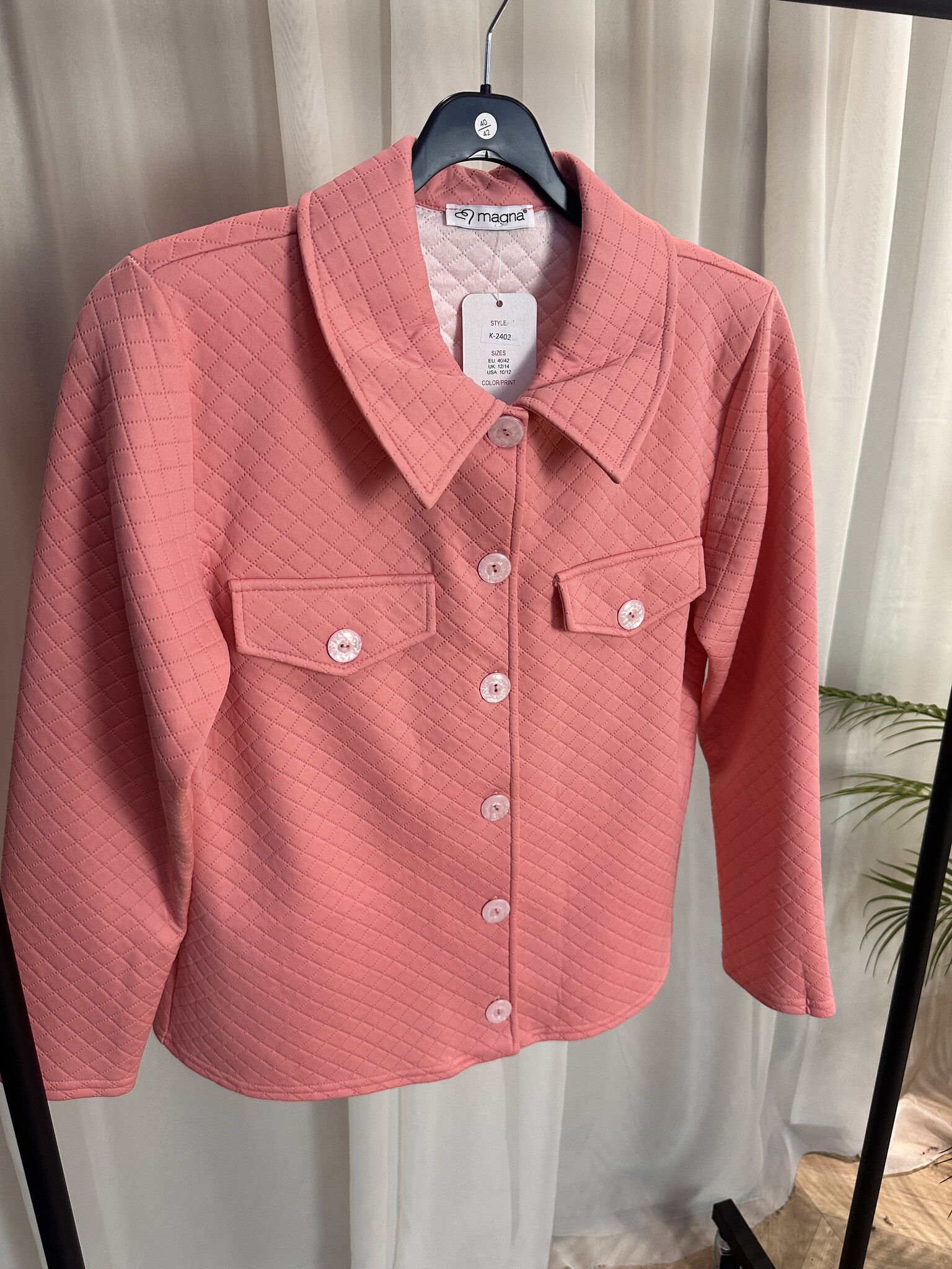 Voel je zelfverzekerd en stijlvol in dit geweldige jasje van Magna Fashion. Het heeft een mooie structuur of een opvallende print die elke outfit een luxe uitstraling geeft. De gouden knopen zorgen voor een chique detail, terwijl de vrouwelijke pasvorm mooi afkleedt en je figuur prachtig laat uitkomen.