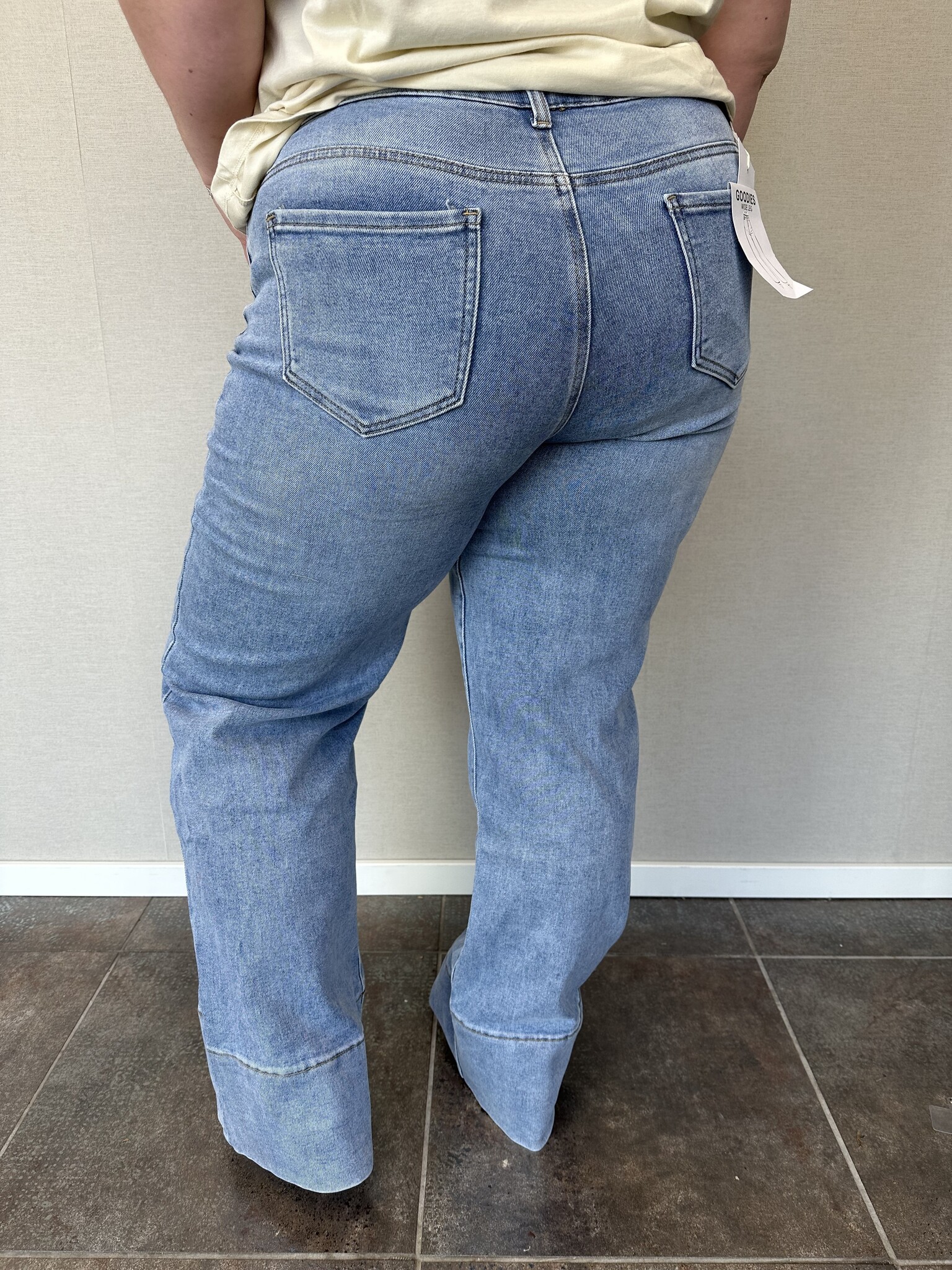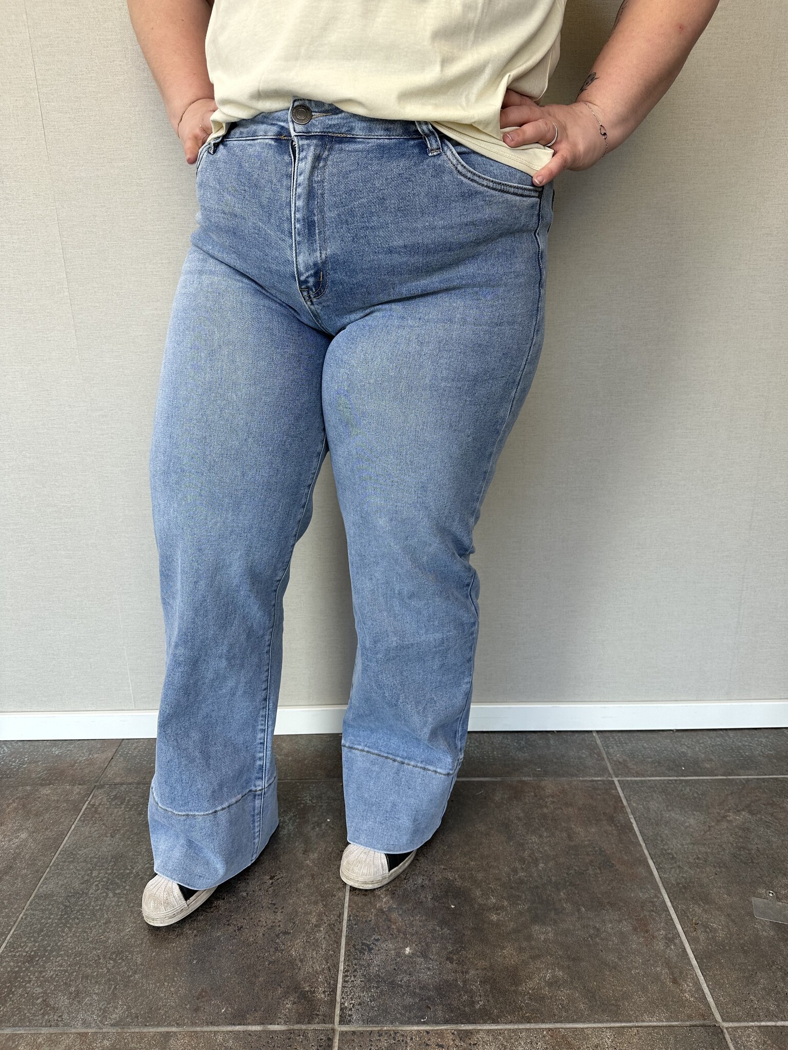 Deze wide leg jeans van Goodies is gemaakt van stretch denim dat zorgt voor een fijn draagcomfort. De jeans is afgewerkt met rits en knoopsluiting. Onderaan zit een mooie grote boord! Een casual wide leg jeans die leuk te combineren is met een top!
