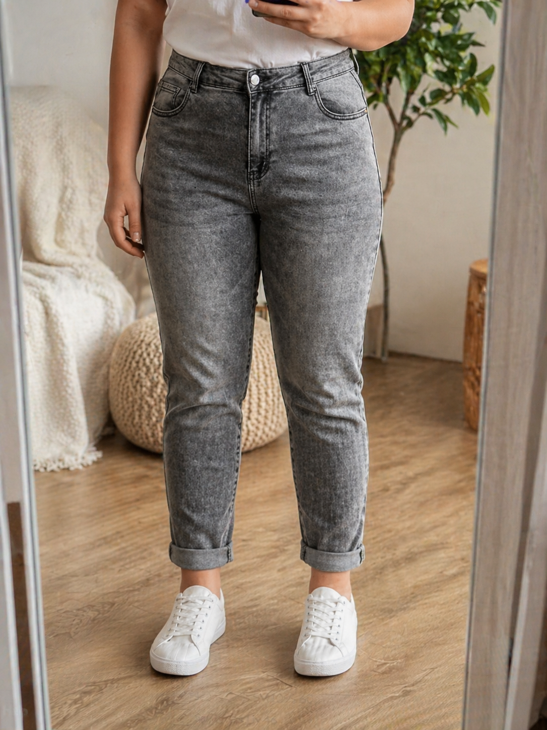 Deze grijze jeans heeft een mom fit model. De broekzakken op de voor- en achterkant maken de jeans praktisch in draagcomfort. Dankzij de high waist pasvorm sluit de jeans mooi aan in je taille. De stof voelt comfortabel aan en is licht elastisch. Combineer je jeans leuk met een blouse of T-shirt en draag de onderkant eventueel omgeslagen voor een casual look.