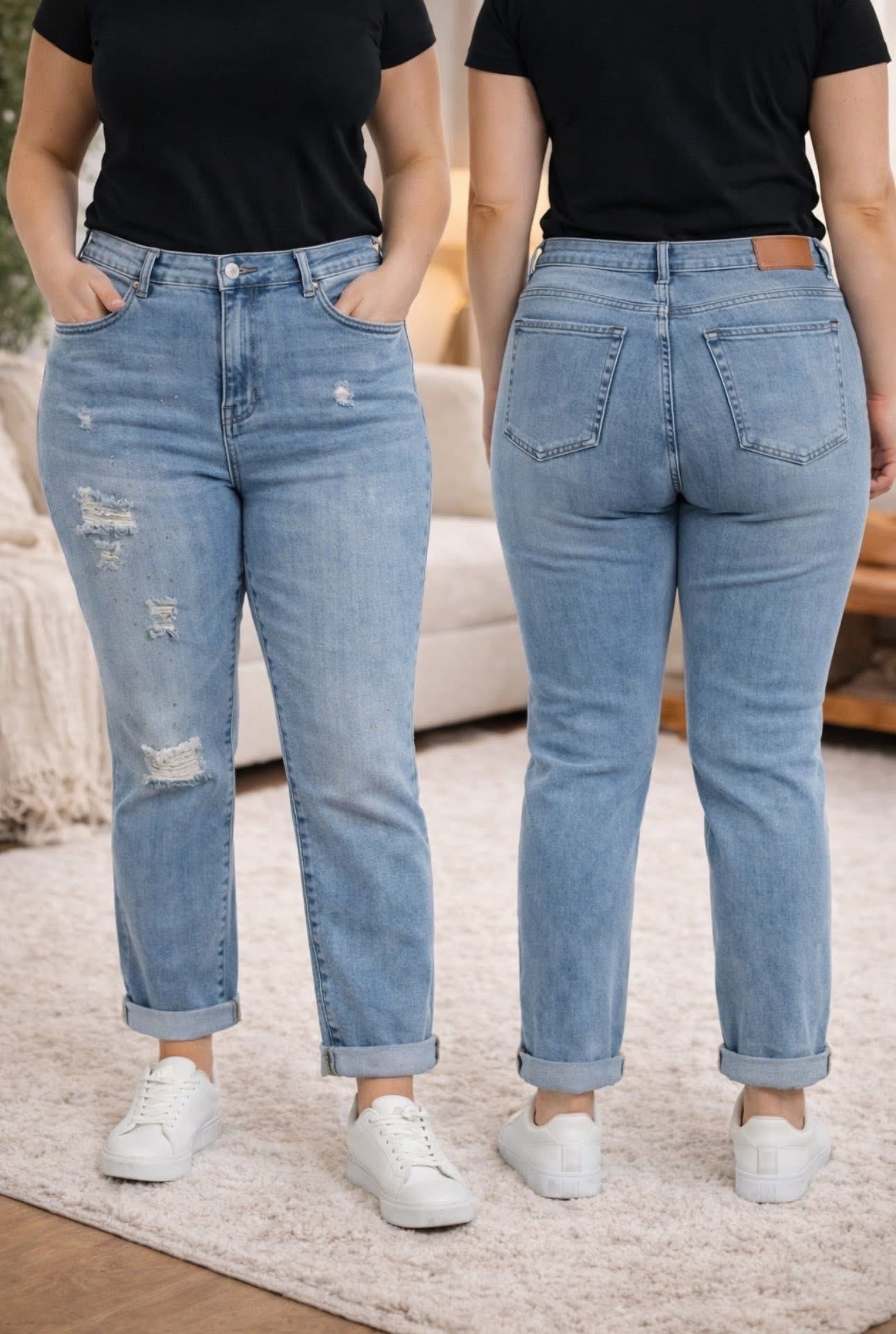 Beautyvol - Jeans SM3304# van G-Smack is een leuke stoere jeans. Dit door de ''Destroyed Jeans'' looks is hij stoer en stijlvol te dragen. Hij is afgewerkt met hier en daar een kleine stras-steen. De jeans valt goed op maat en is mooi hoog in de taille.