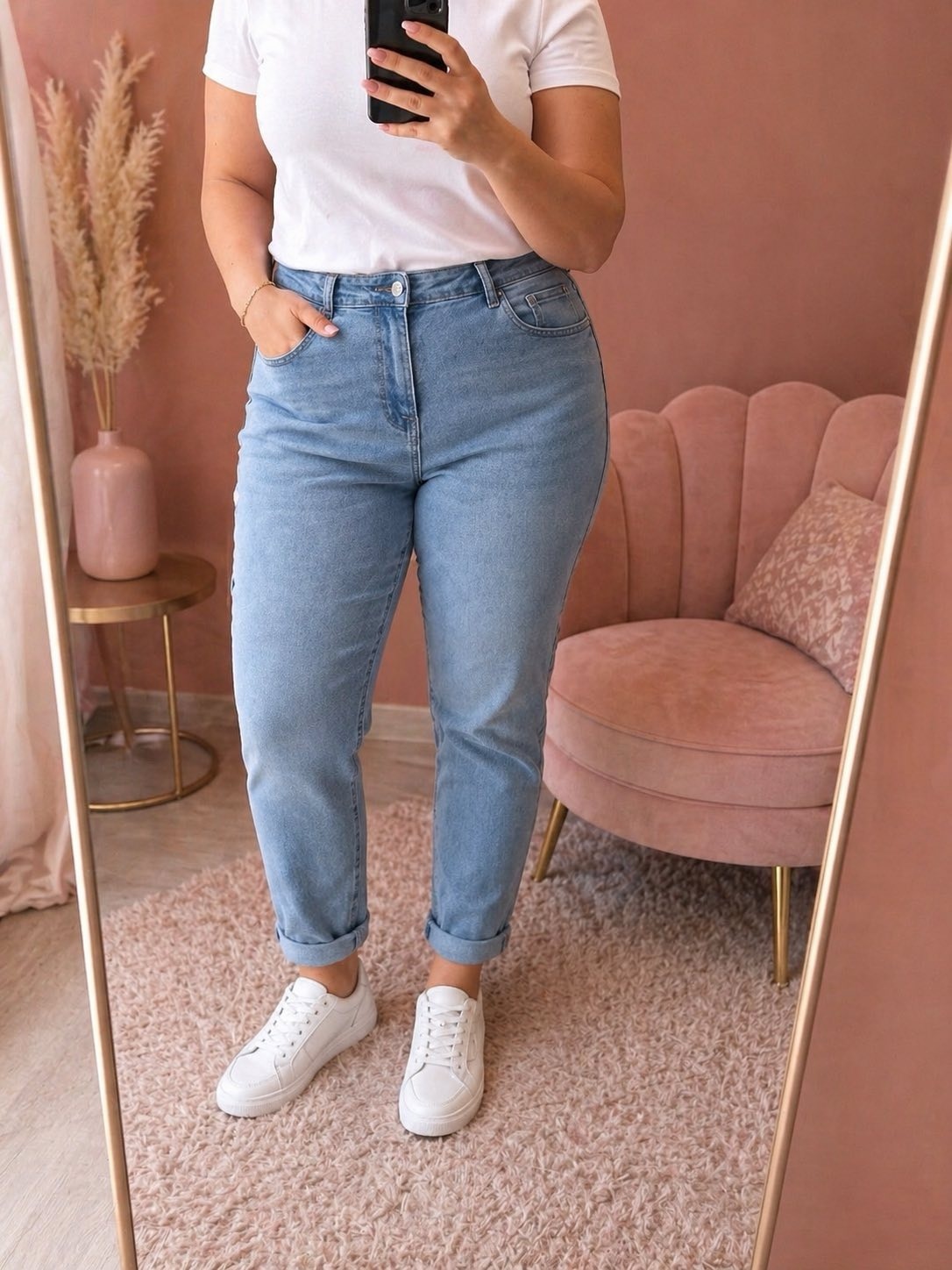 Deze denimblauwe jeans heeft een mom fit model. De broekzakken op de voor- en achterkant maken de jeans praktisch. De high waist pasvorm sluit mooi aan rond je taille. Door de mix met katoen en elastaan draagt de stof comfortabel en licht elastisch. Combineer je jeans leuk met een T-shirt of blouse en draag de onderkant eventueel omgeslagen voor een casual look.