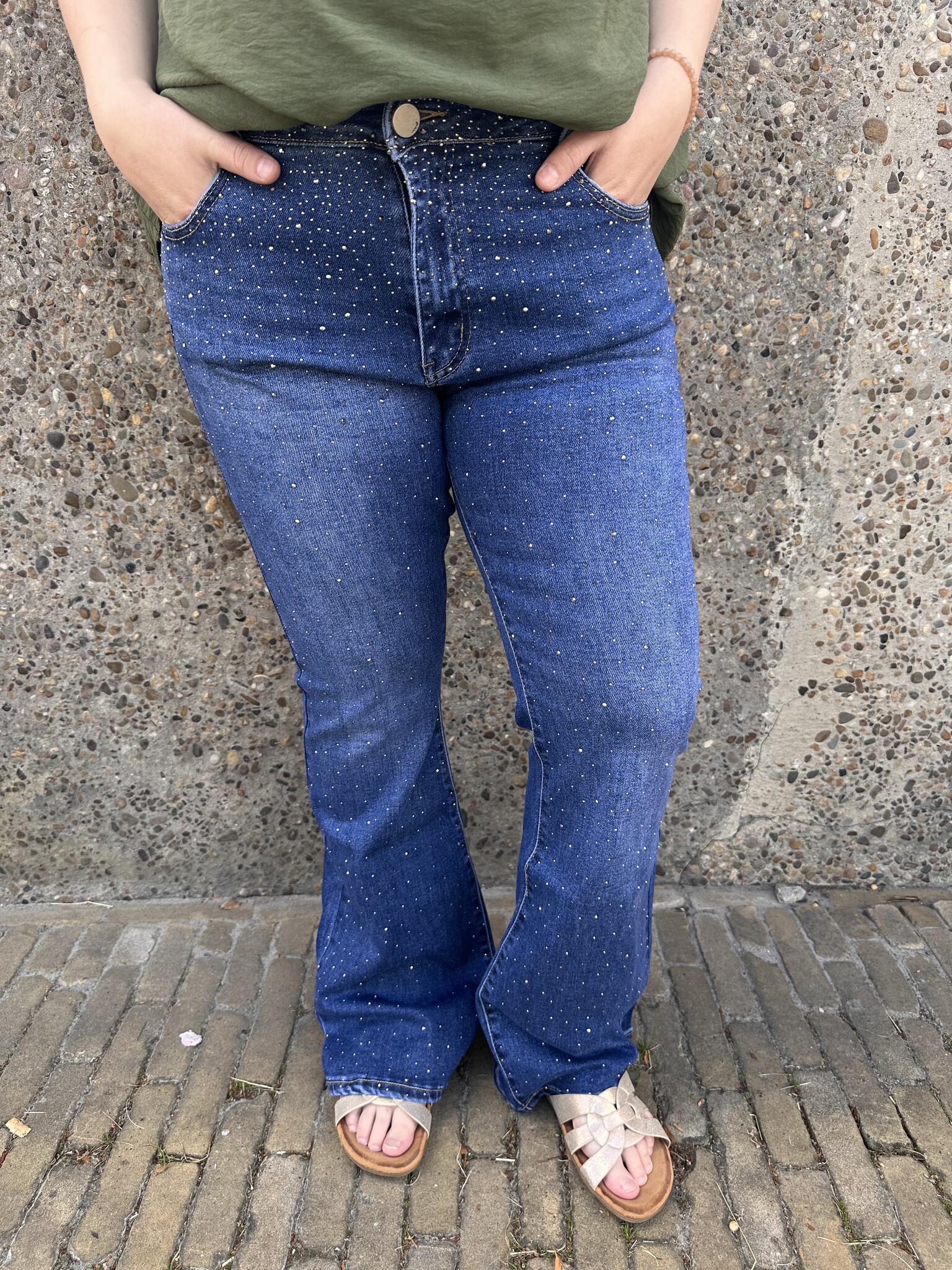 Super gave jeans met sparkel, de lengte van de broek kan met lengte 32 & 34.