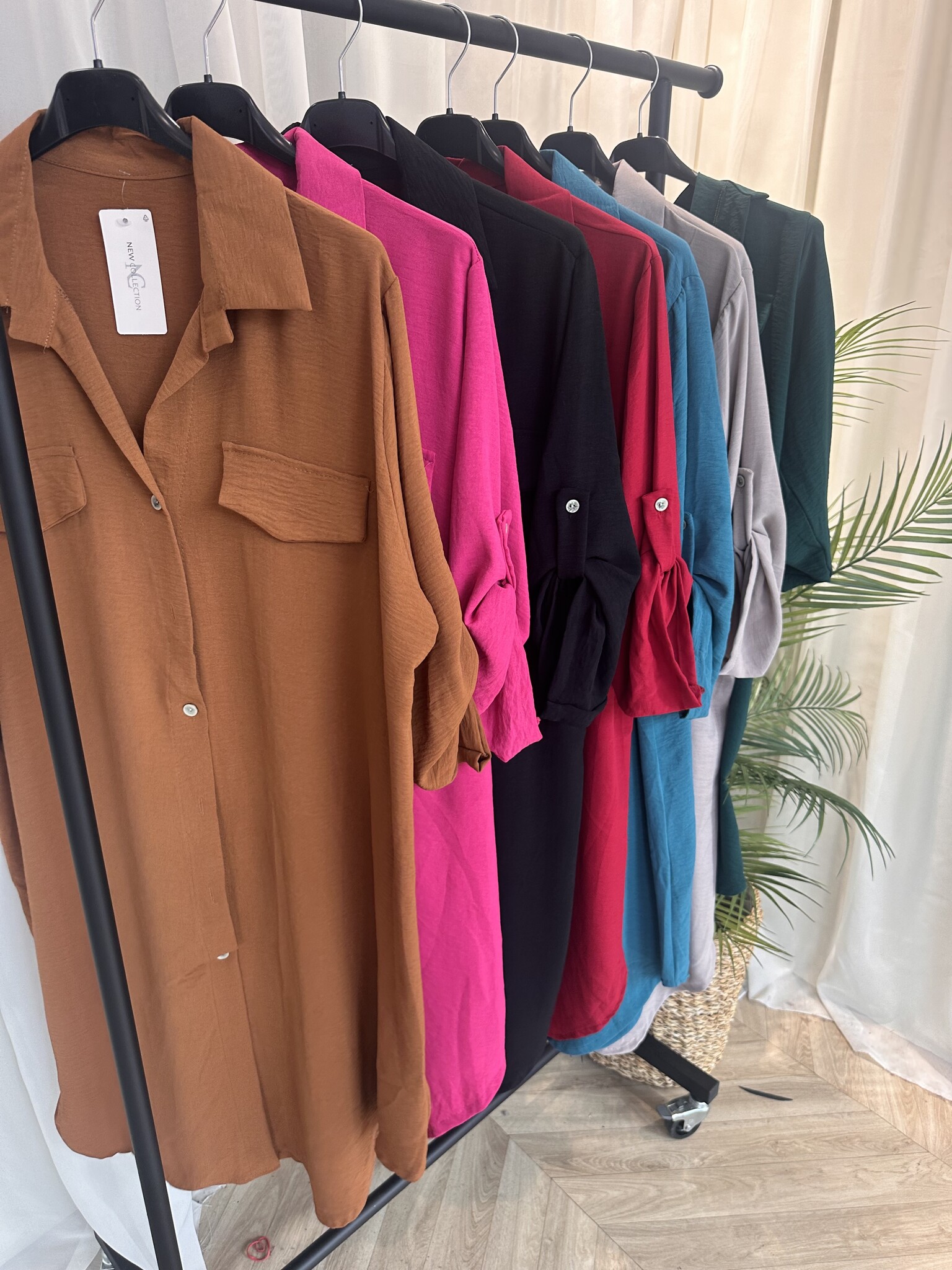 Verkrijgbaar in superleuke kleurtjes, perfect om eindeloos te combineren, draag hem open als blouse of dicht als jurk voor een stijlvolle, eigentijdse look.