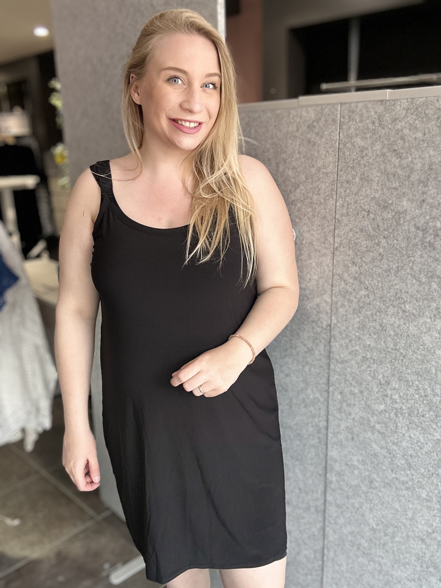 fijn jurkje, zo met mooi weer of ergens onder een zoals een vest. ik heb ze in meerdere kleuren en wilde deze kleur nog.. bij beautyvol was hij op voorraad en het goedkoopste.