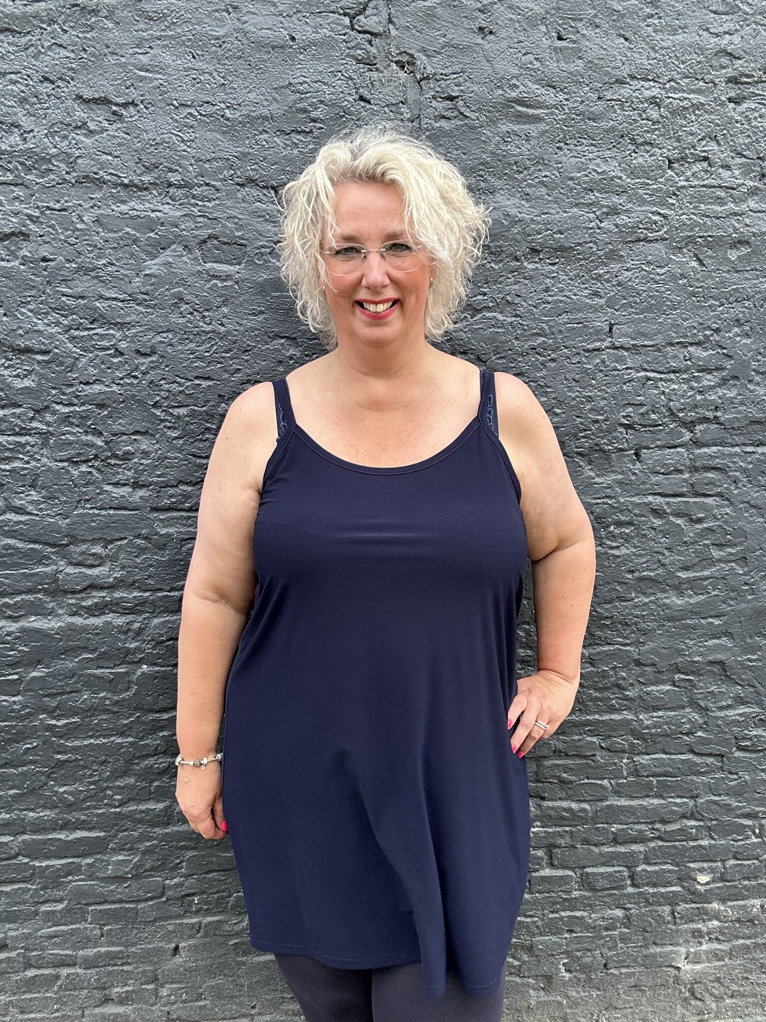 Magna Fashion - Een hele mooie jurk met spaghetti bandjes, deze kan je ook als lang hemd dragen met een leuke legging er onder. Valt goed op maat.