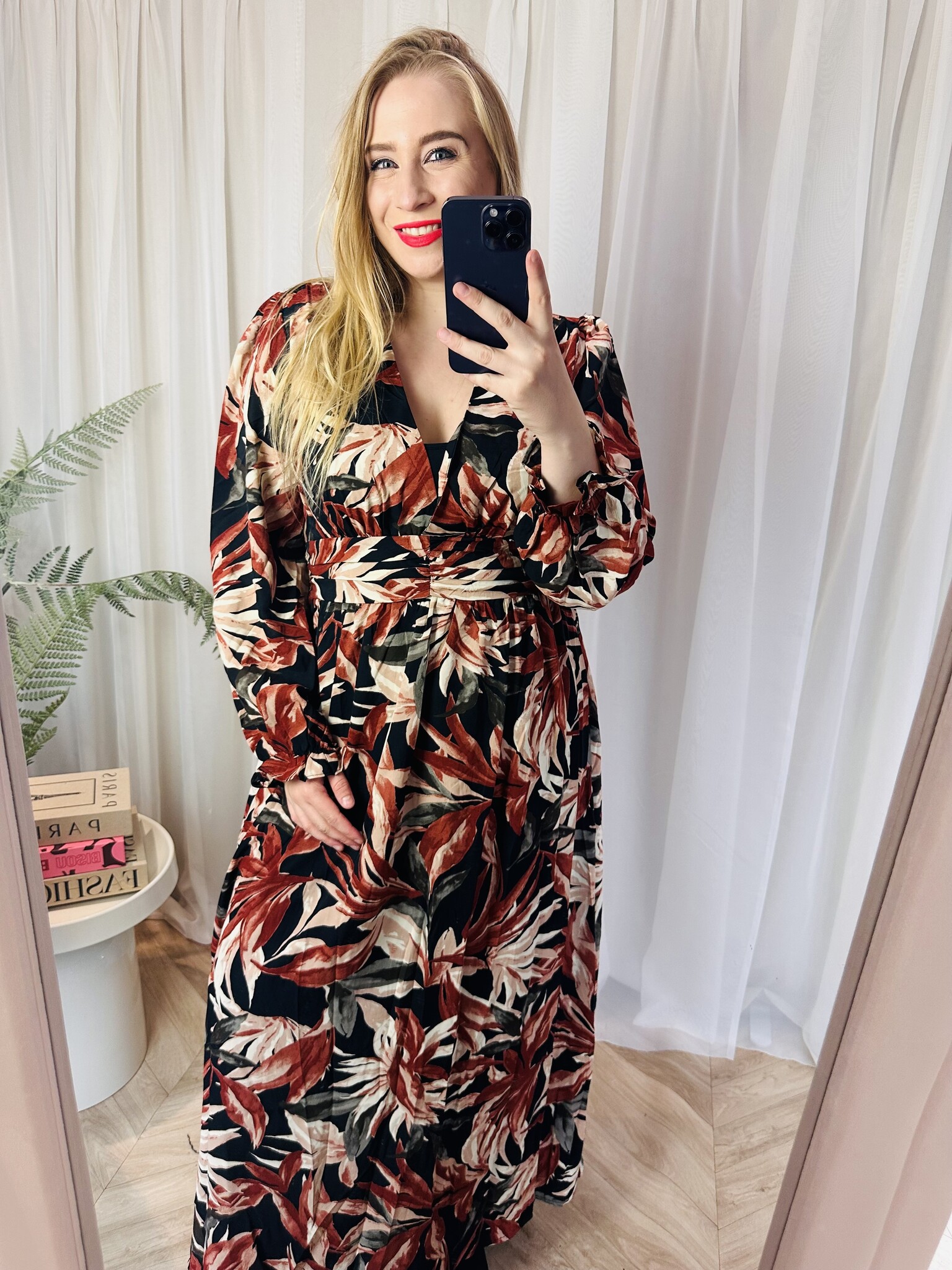 Deze stijlvolle herfstjurk is perfect voor de koelere dagen. De mooie details en de elegante langere lengte geven je een vrouwelijke, chique uitstraling. Gemaakt van een comfortabele stof die heerlijk draagt en makkelijk te combineren is met laarzen of een gilet voor een complete herfstlook.