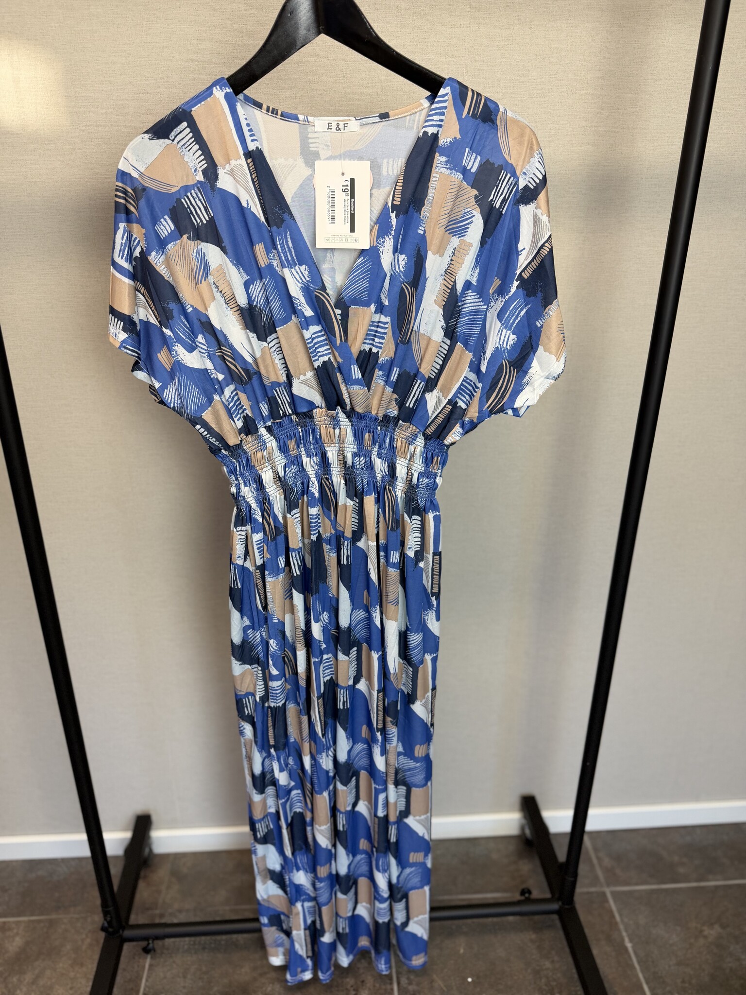 Deze jurk van Beautyvol draagt heerlijk en valt mooi. De jurk heeft een mooie abstracte print en is beschikbaar in meerdere kleuren en heeft een los model. Gemaakt van een gladde stof voor een fijn draagcomfort. Deze jurk heeft een v-hals en er zit elastiek onder de borsten.
