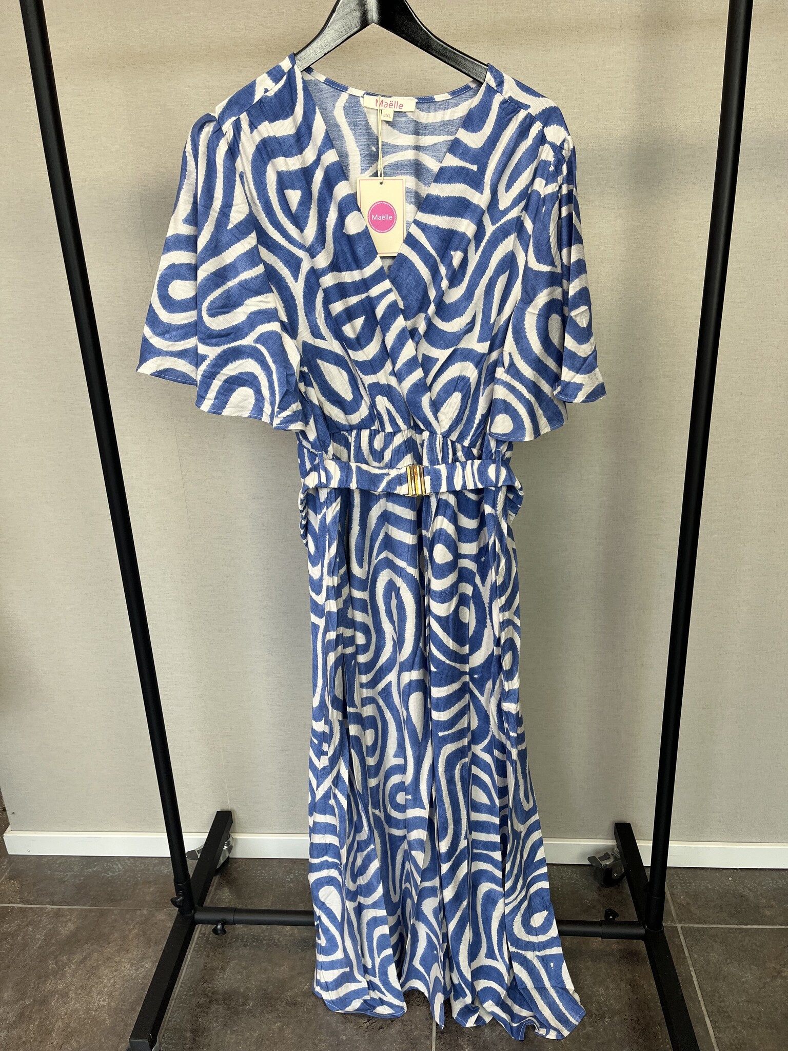 Deze jurk van Maëlle valt mooi en heeft een losvallende pasvorm. De jurk heeft een mooie blauwe met witte kleur in een mooie print. Gemaakt van een luchtige stof dat zorgt voor een fijn draagcomfort. De jurk is afgewerkt met diepe hals en een elegant ceintuur. De jurk heeft twee steekzakken. Perfect voor een elegant look!