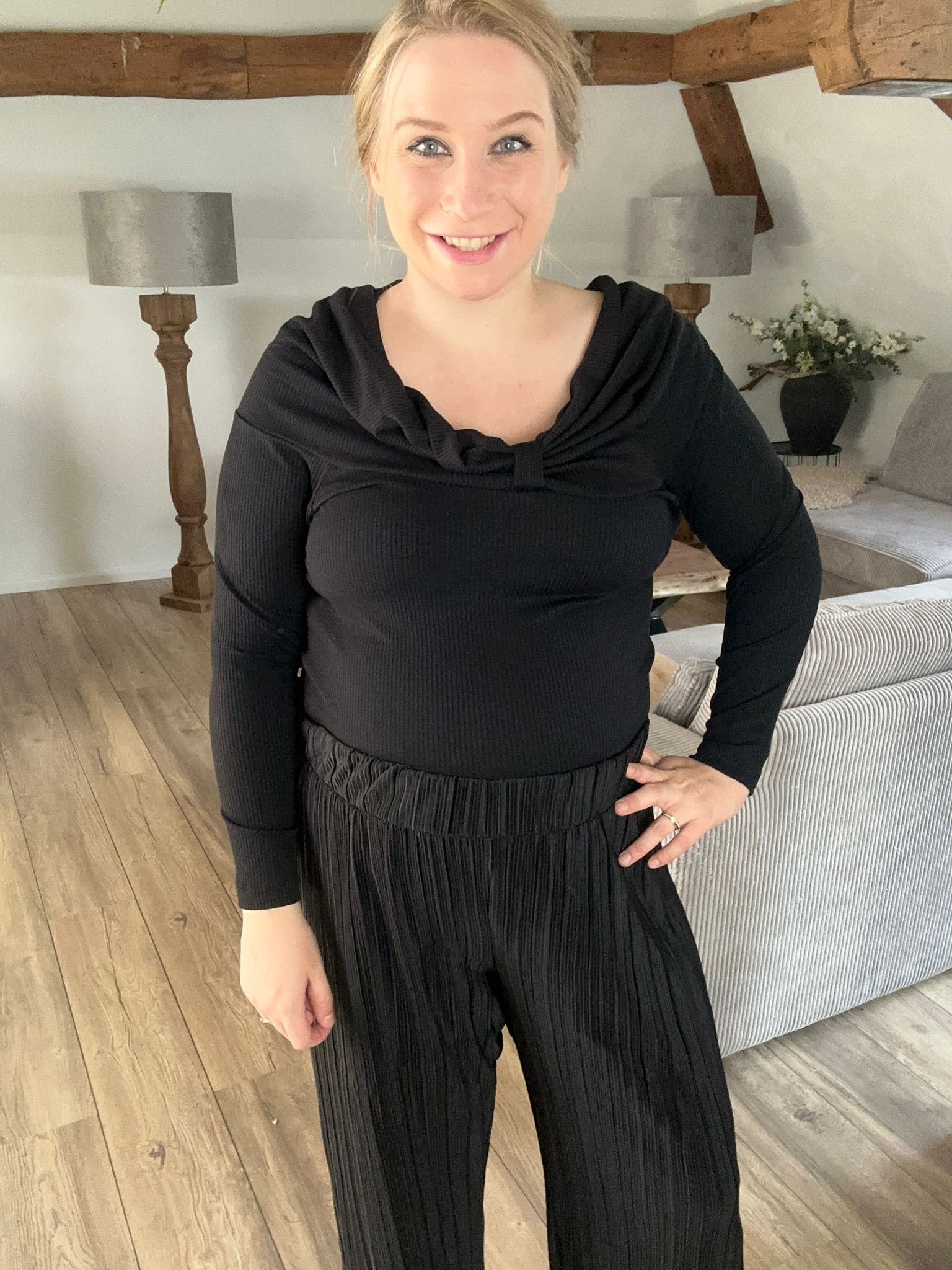 Kaffe Curve - prachtige offshoulder top/trui met super mooi detail voor op de borst. Draagt heerlijk en heeft een mooie, fijne ribstof.