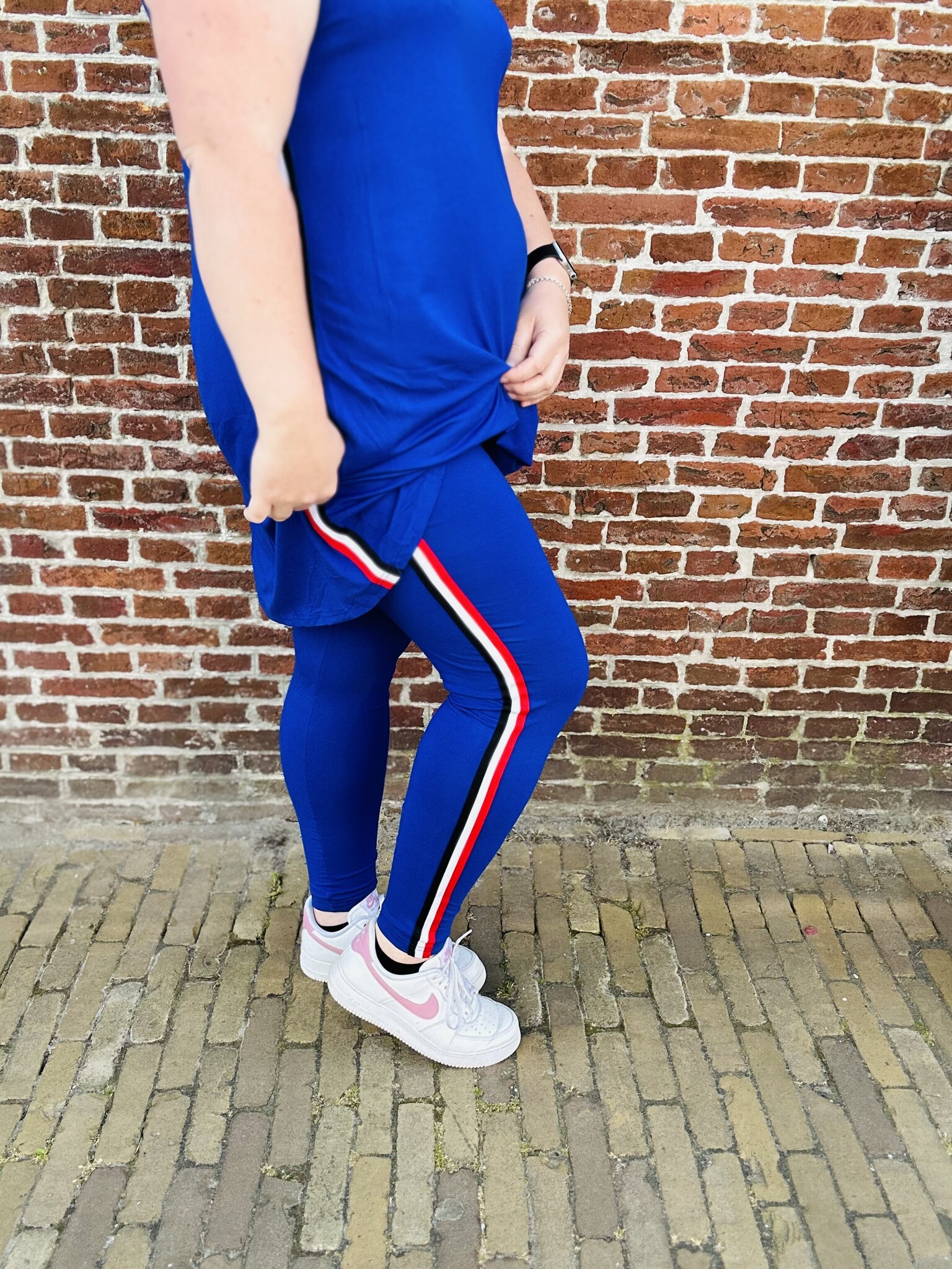 Magna Fashion - Super leuke legging lang model. De legging heeft een effen kleur met op de zijkant een leuke sportieve bies.