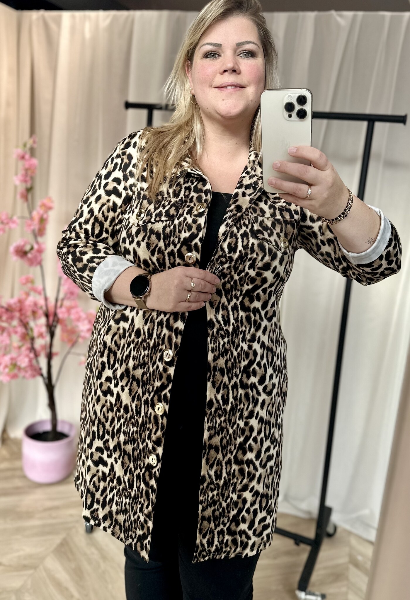 Prachtig lang jasje met panterprint van Magna