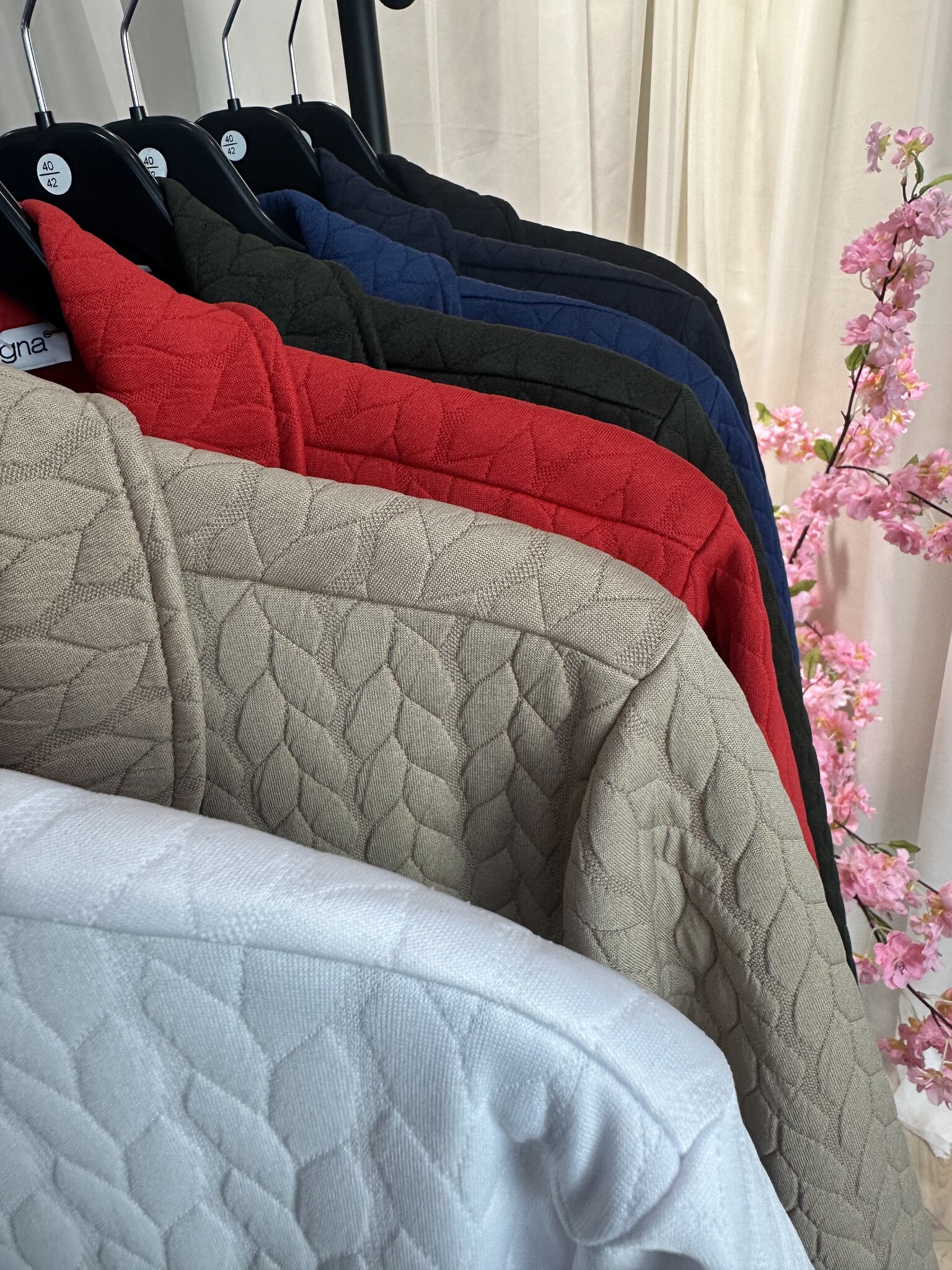 Prachtig lang jasje met een subtiel vlecht patroon van Magna