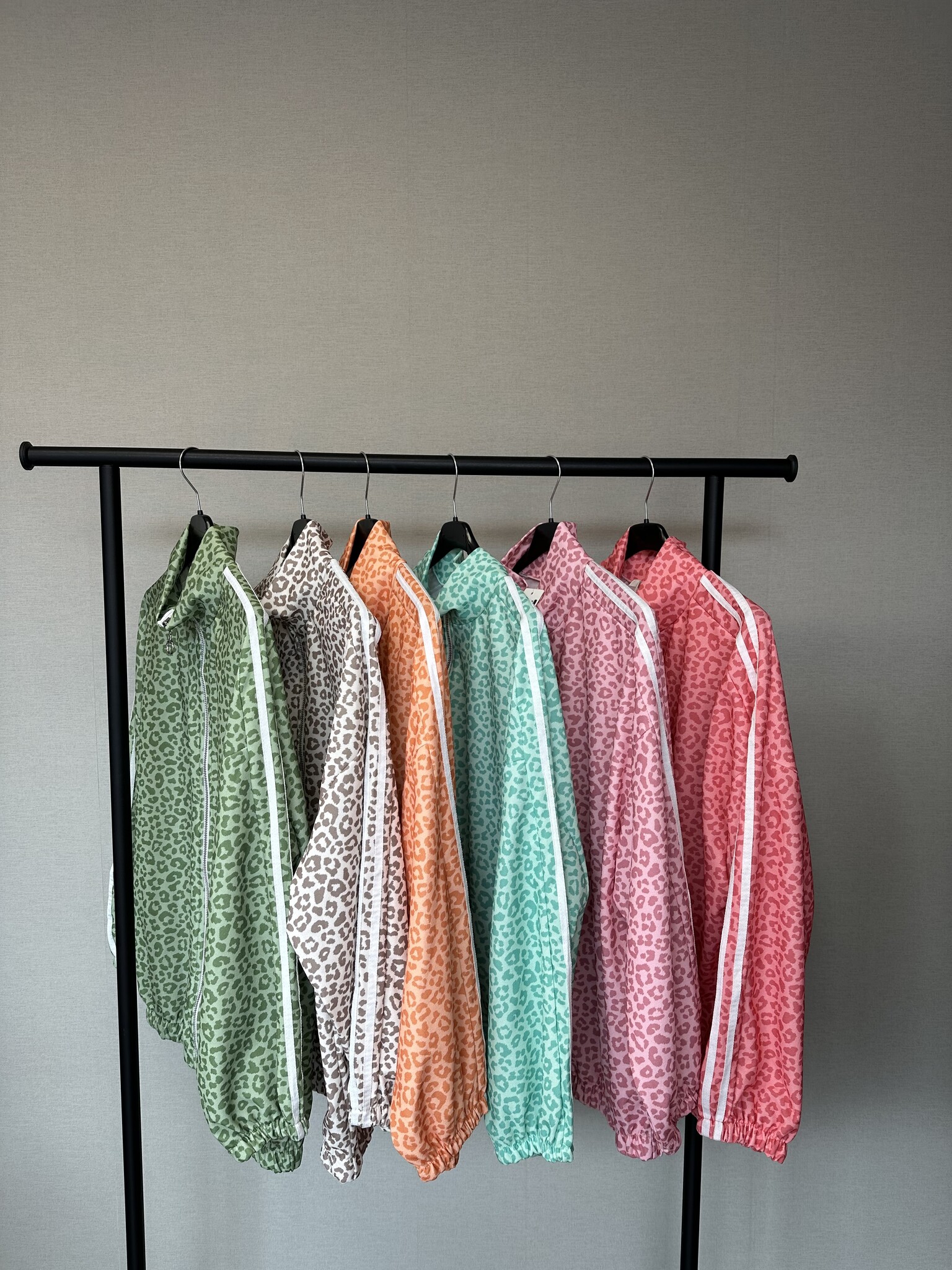 De jas heeft een trendy panterprint en is afgewerkt met een sportieve witte streep als detail, wat hem net dat beetje extra geeft. Dankzij het elastiek onderaan en in de mouwen valt hij mooi en zit hij heerlijk comfortabel.