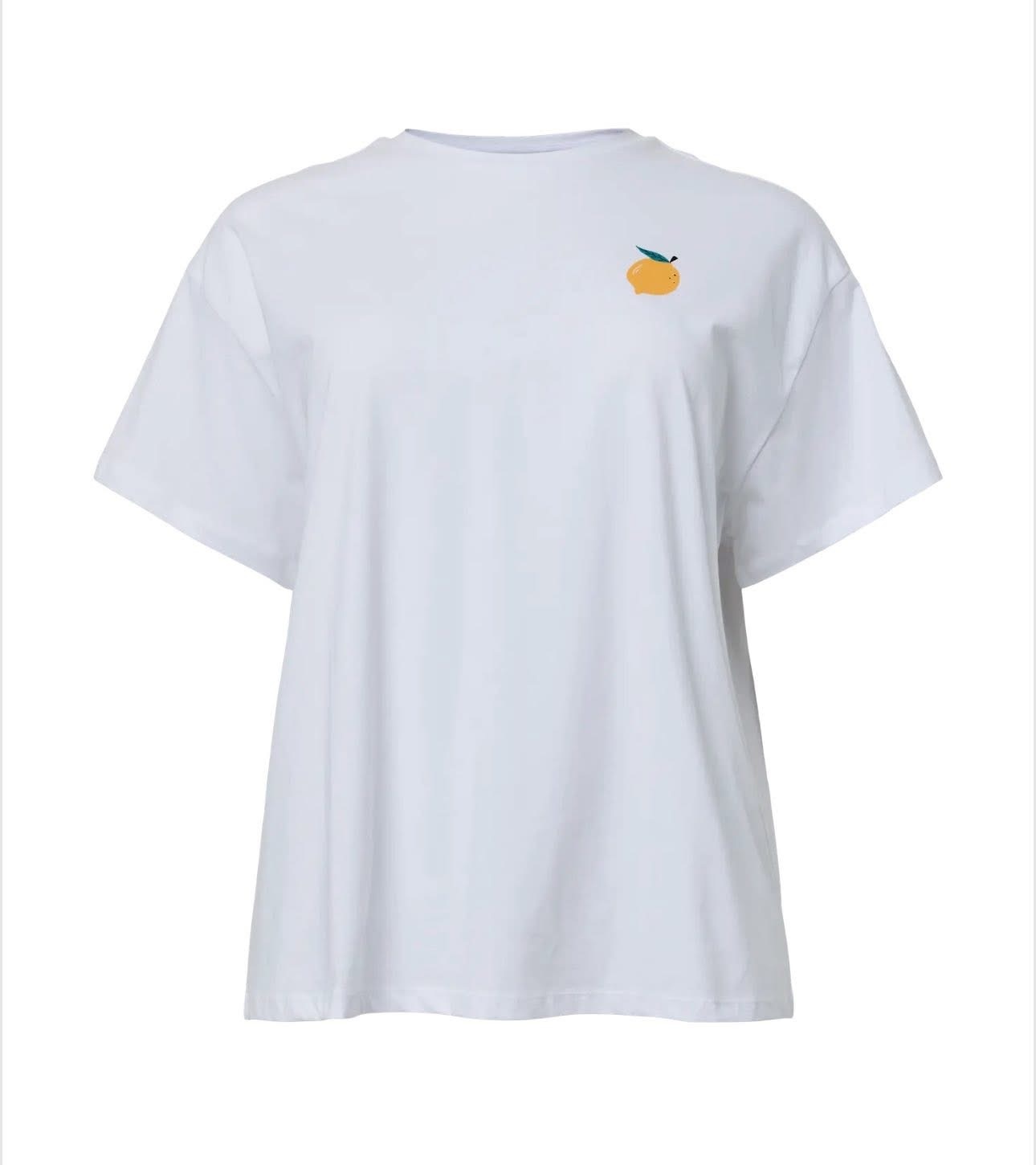 PCALFI FASTTRACK SS OVERSIZE TEE QX Bright White/Small Lemon