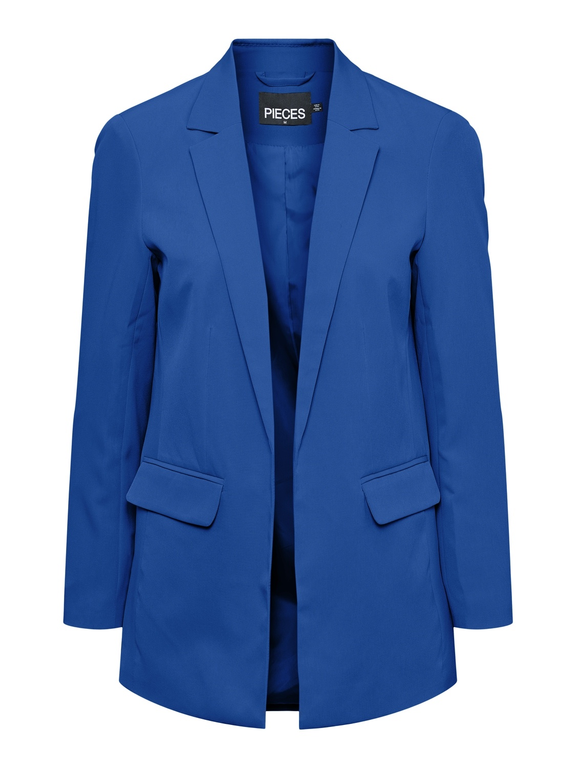 Deze kobaltblauwe blazer van Pieces draagt elegant en heeft een losvallende pasvorm. De blazer heeft een mooie kobaltblauwe kleur. Gemaakt met een gevoerde stof dat zorgt voor een chique draagcomfort. De blazer is afgewerkt met twee zakken aan de voorkant. Een casual chique blazer die leuk te combineren is met een top!