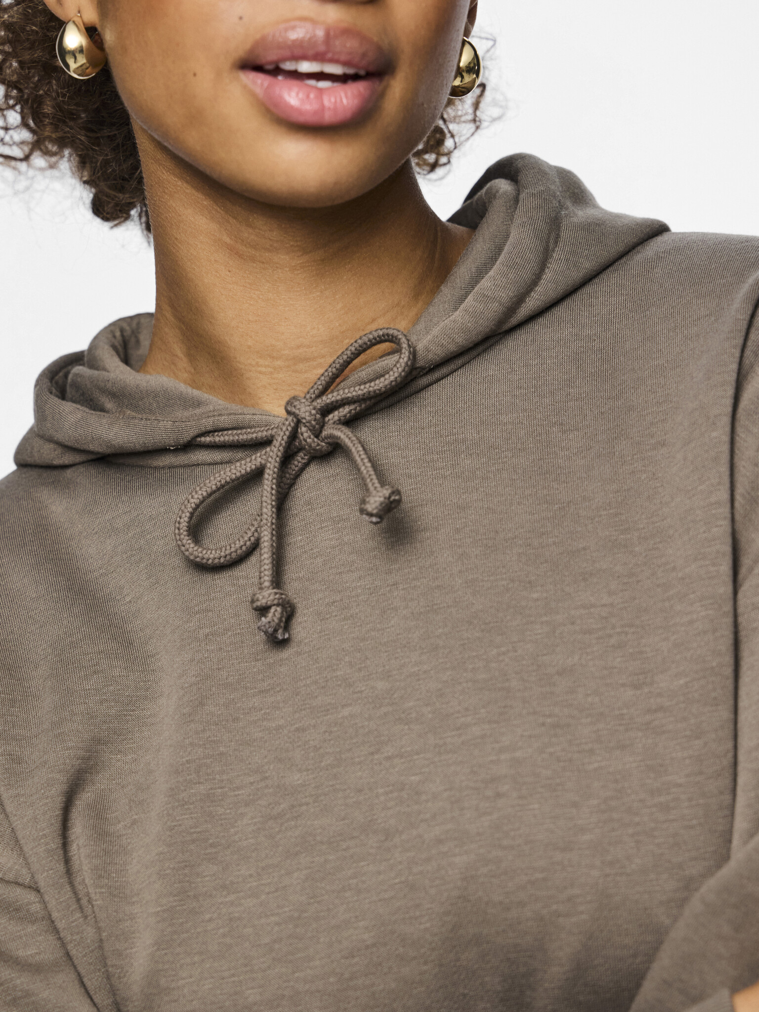Deze grijsgroene hoodie van Pieces is comfortabel en heeft een losvallende pasvorm. Gemaakt van een fleece stof aan de binnenkant die zorgt voor een fijn draagcomfort. Een sportieve hoodie die leuk te combineren is met een jeans!