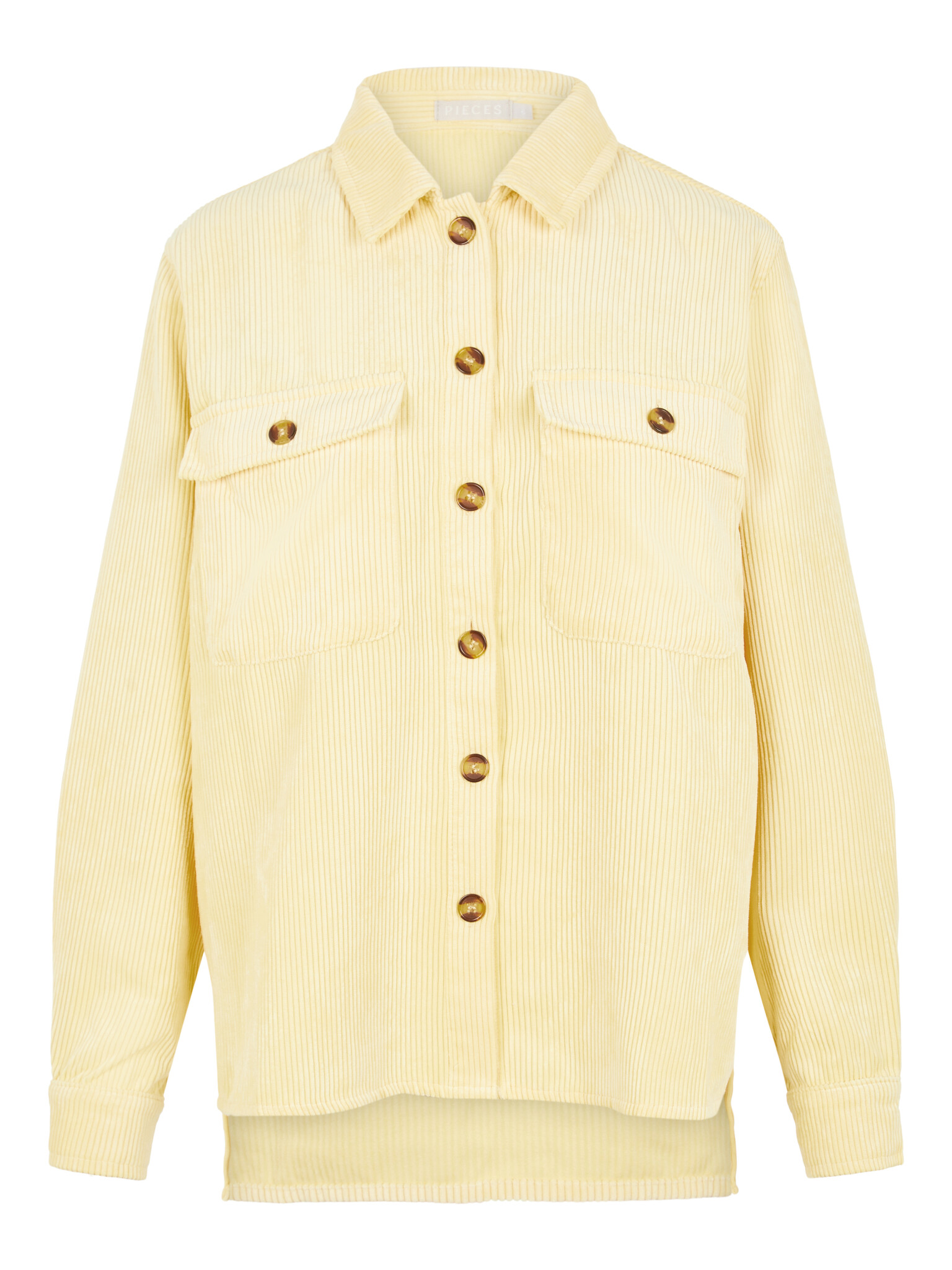 Deze blouse van corduroy van Pieces is een fleurige blouse die in de lente perfect als jas te dragen is! De blouse heeft een mooie gele kleur en is afgewerkt met borstzakken met knopen en knopn over de hele borst. Ideaal om zowel los als vast te dragen!