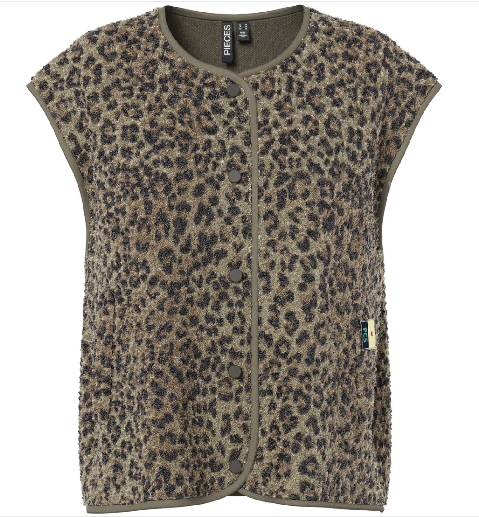 PCKATTY TEDDY VEST BC QX Tannin/Leopard
