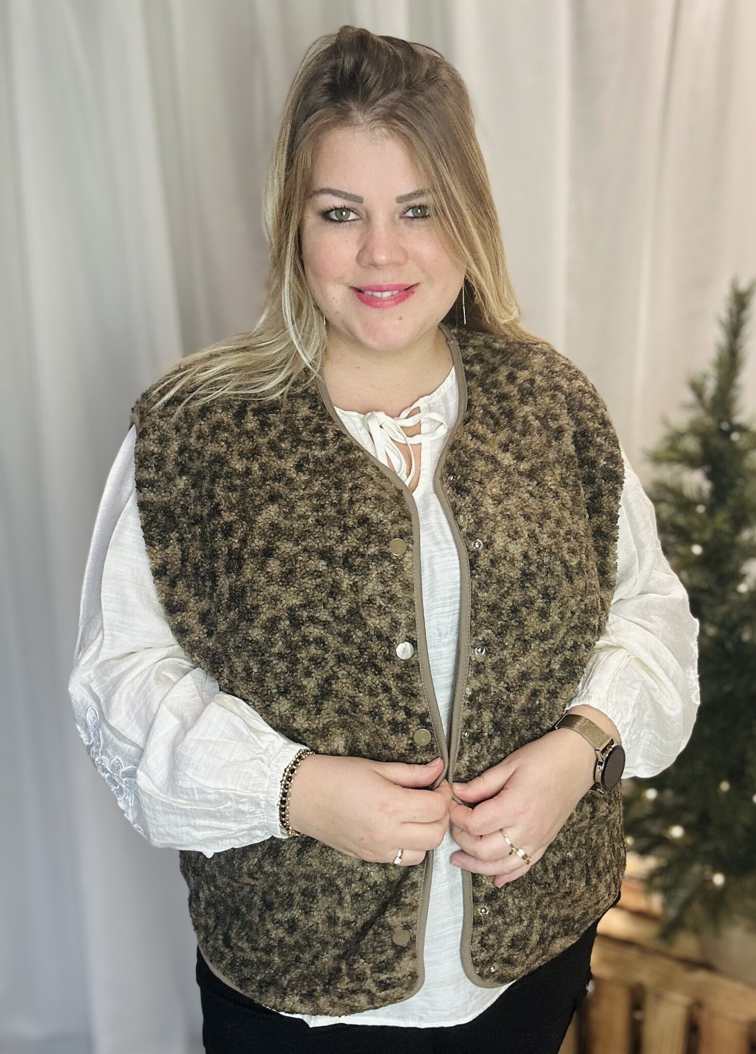 Pieces Curve - Onwijs mooi teddy gilet met luipaardprint.