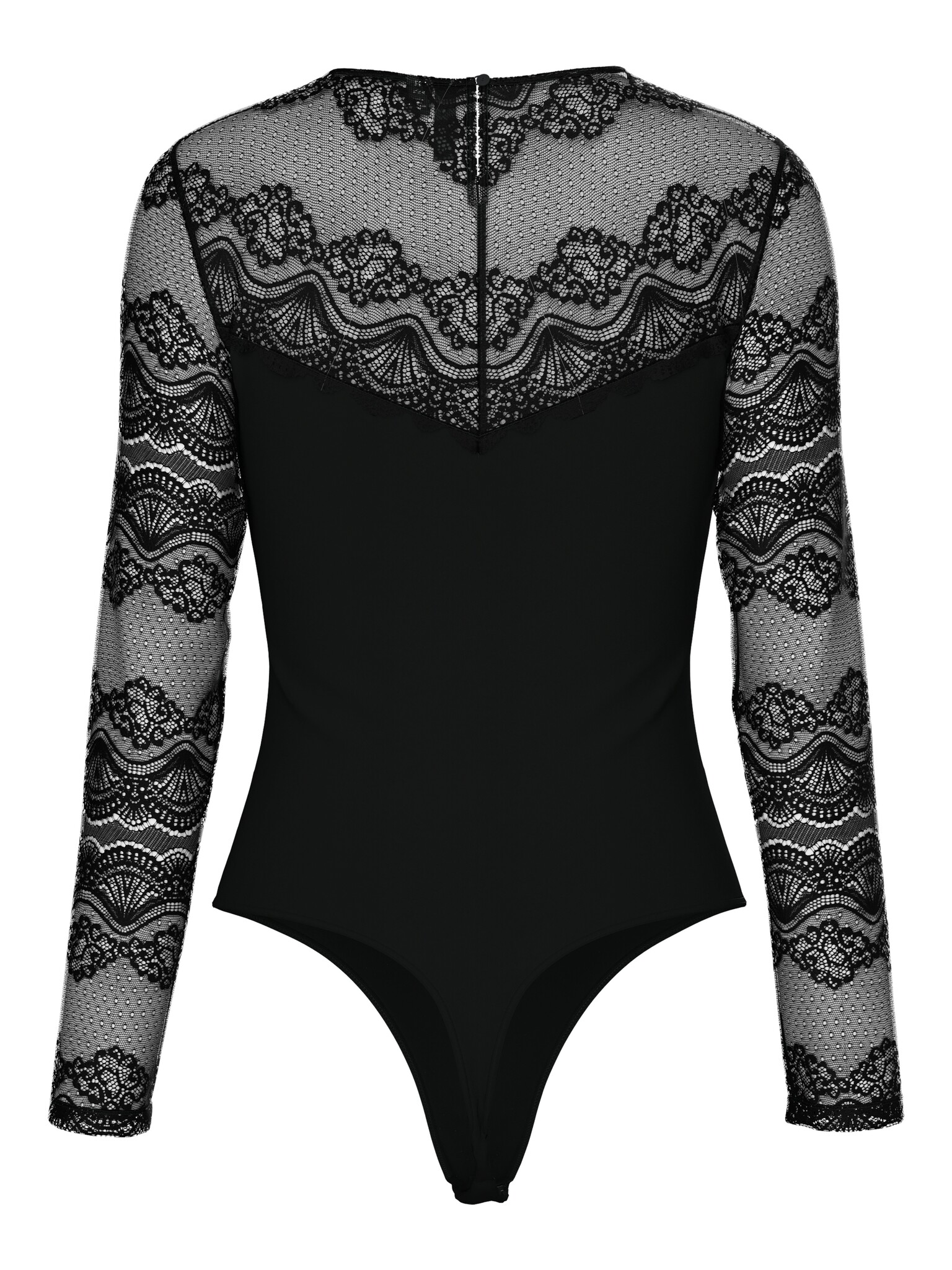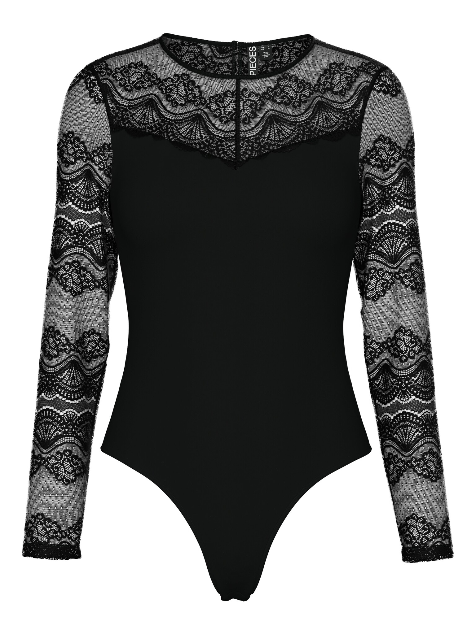Deze zwarte body met kant van Pieces heeft een aansluitende pasvorm. In de body zelf zit veel stretch, dat zorgt voor een fijn draagcomfort. Perfect te combineren met een blazer voor een nette look.