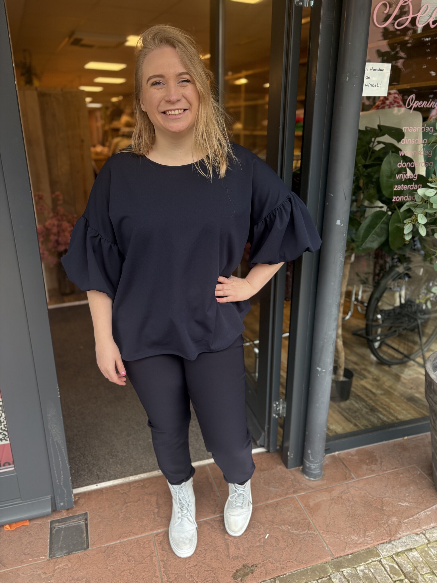 Hele leuke basic shirt, maar toch door de pofmouw weer heel elegant en sierlijk te dragen. Hij is te dragen vanaf maat 44 tot en met maat 50.