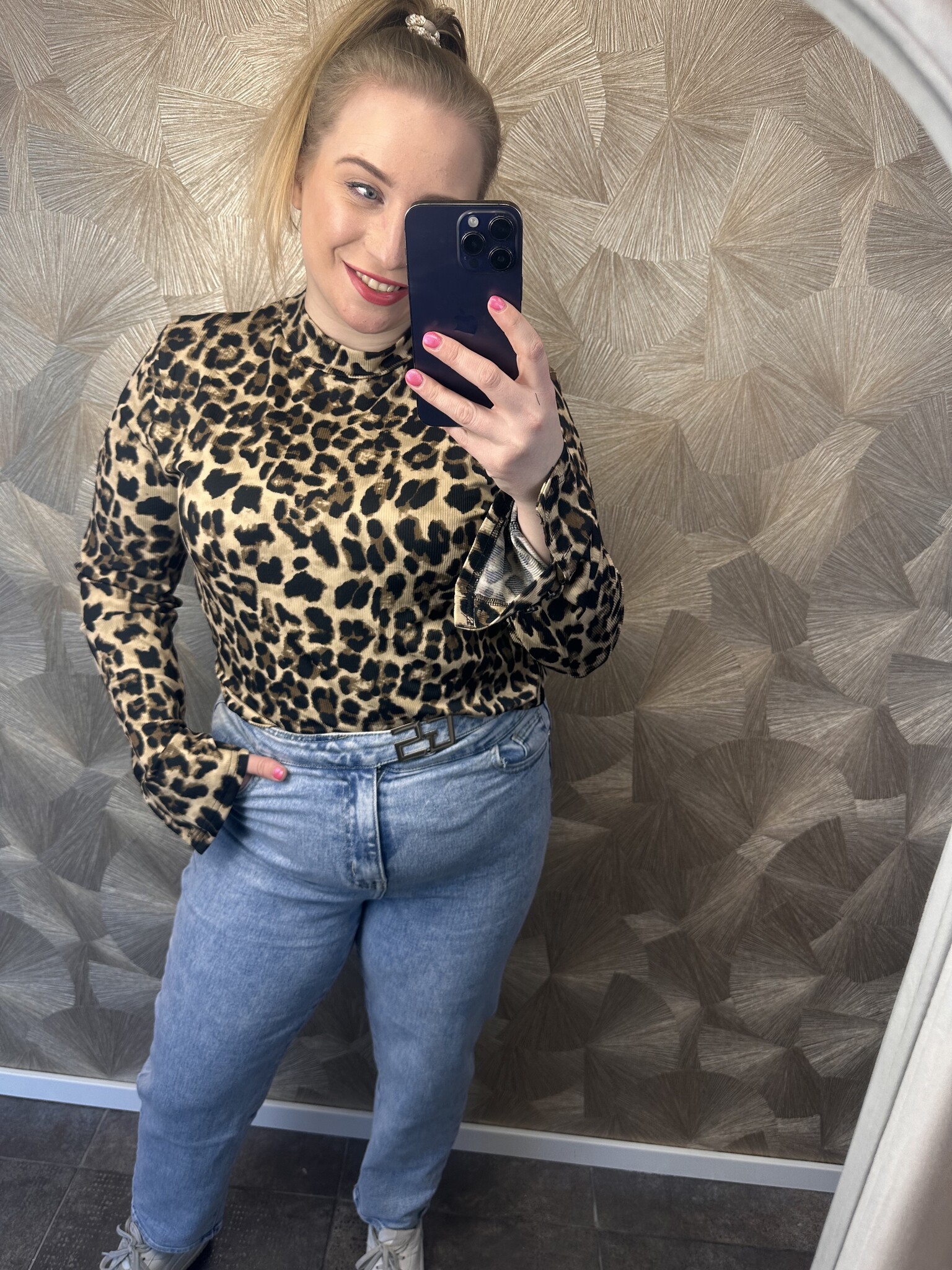 Een heel leuk shirt met panterprint, los te dragen maar ook erg leuk onder een blazer of jasje. Valt goed op maat.