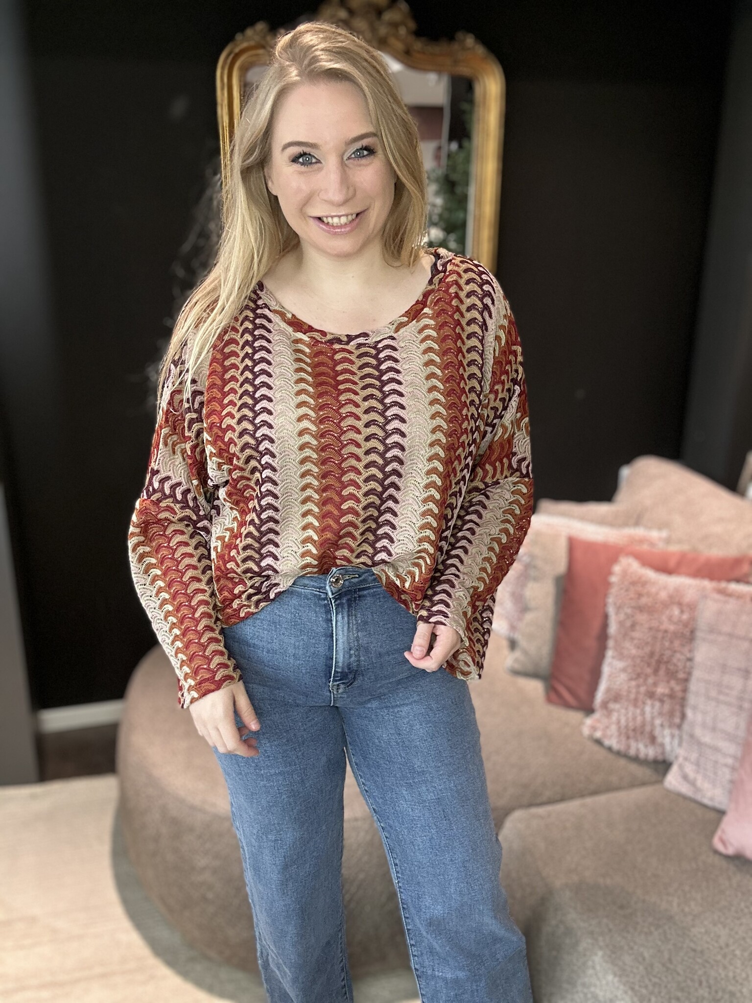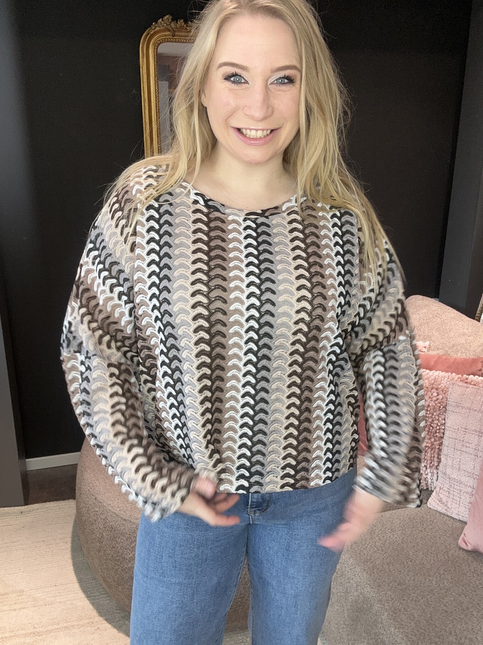 Wat een leuk shirt is dit geweldige ZIGZAG shirt, verkrijgbaar in twee kleurencombinaties & met leuke wijd uitlopende mouwen. Zit je tussen twee maten in? Neem dan de kleinste.