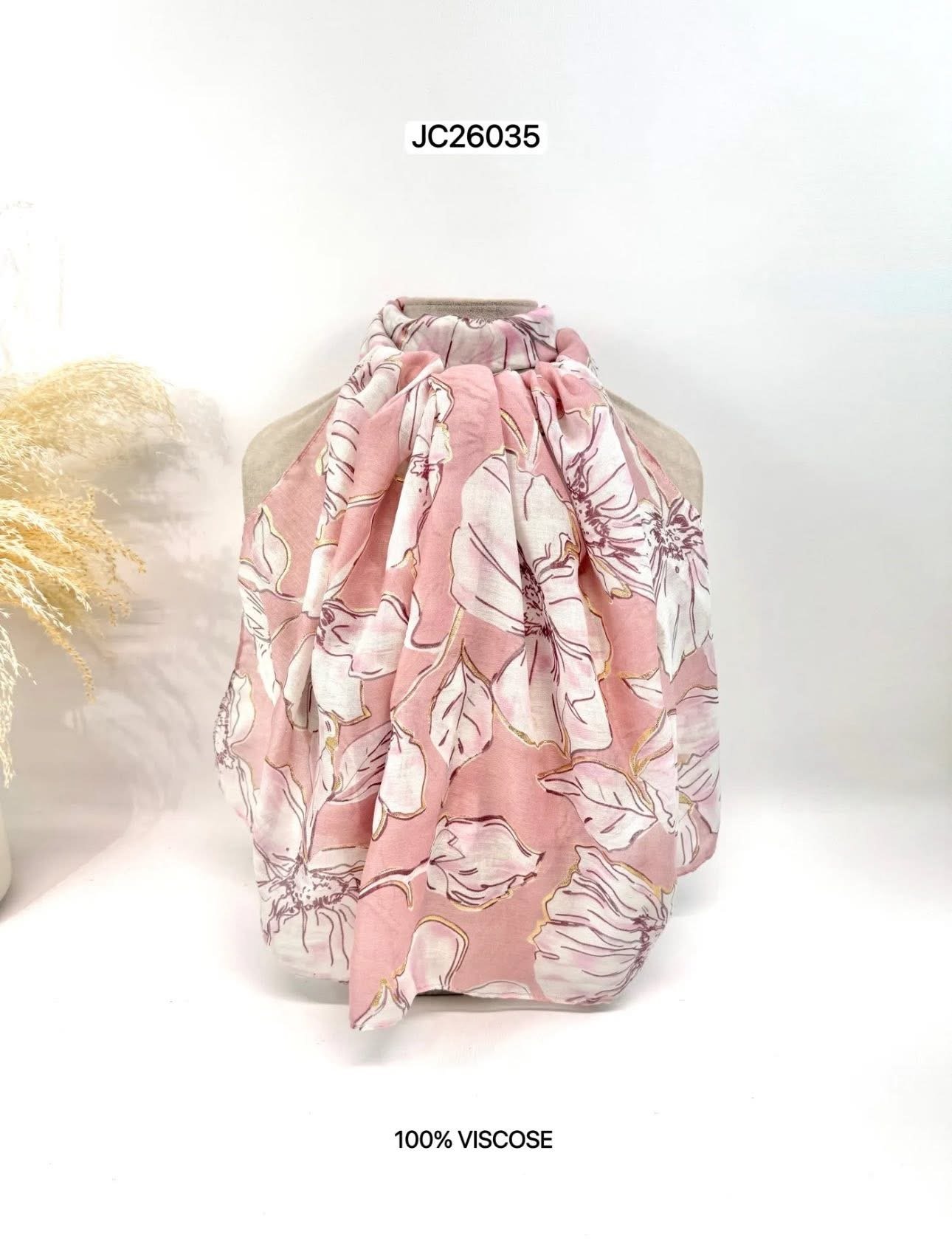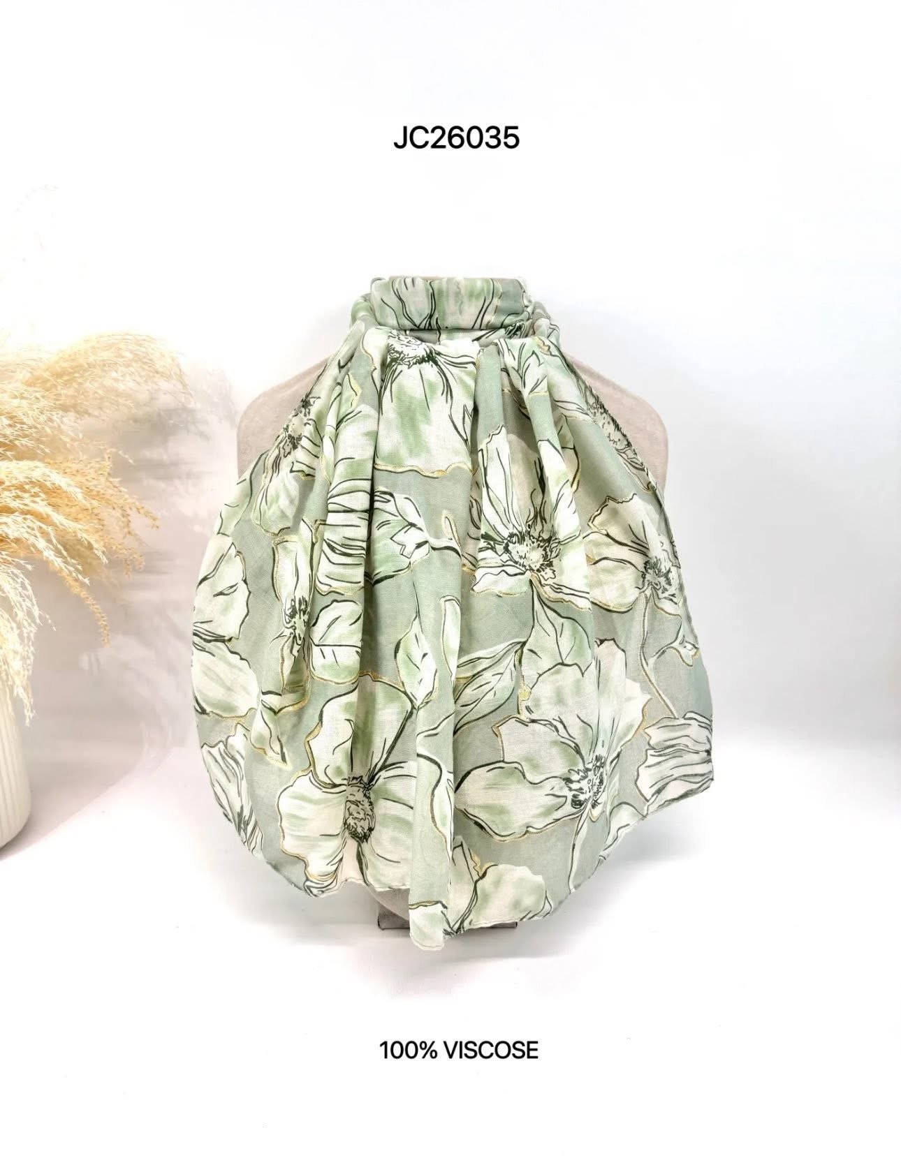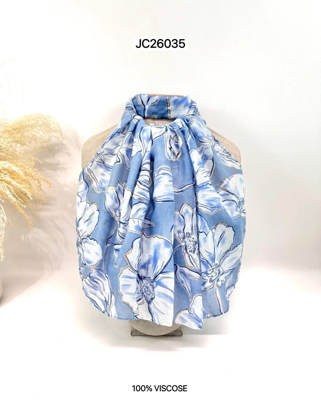 Sjaal Jade heeft prachtige mooie grote bloemen over de gehele sjaal heen. Deze sjaal is beschikbaar in een groene, blauwe en rode kleur. Sjaal Jade is een vrouwelijke sjaal die leuk te combineren is met een top voor een elegante outfit. Doordat deze sjaal van viscose is gemaakt, valt die soepel en is de stof heerlijk zacht.