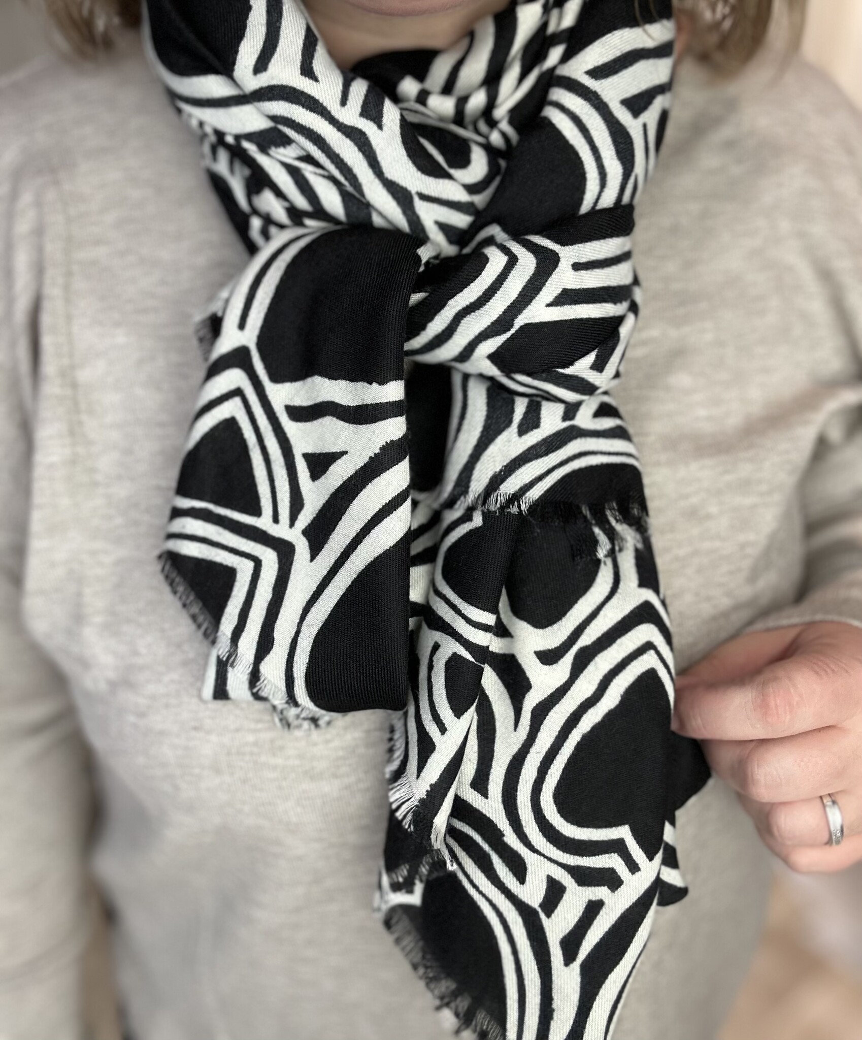 Geef je outfit een frisse touch met deze vrolijke sjaal! Gemaakt van een zachte, fijne stof die heerlijk draagt, en uitgevoerd in een speels, kleurrijk ontwerp dat elke look meteen opfleurt. Perfect om je outfit nét dat beetje extra te geven, of om lekker warm te blijven op frisse dagen.