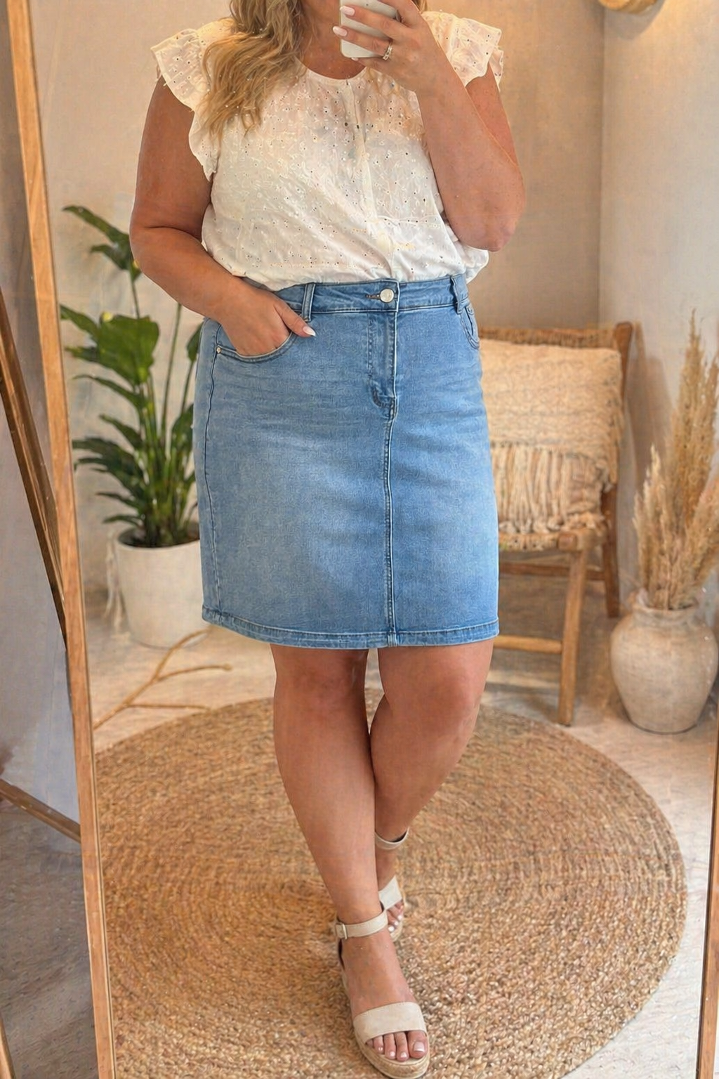 Pasvorm: Deze spijkerrok heeft een aansluitende pasvorm.
