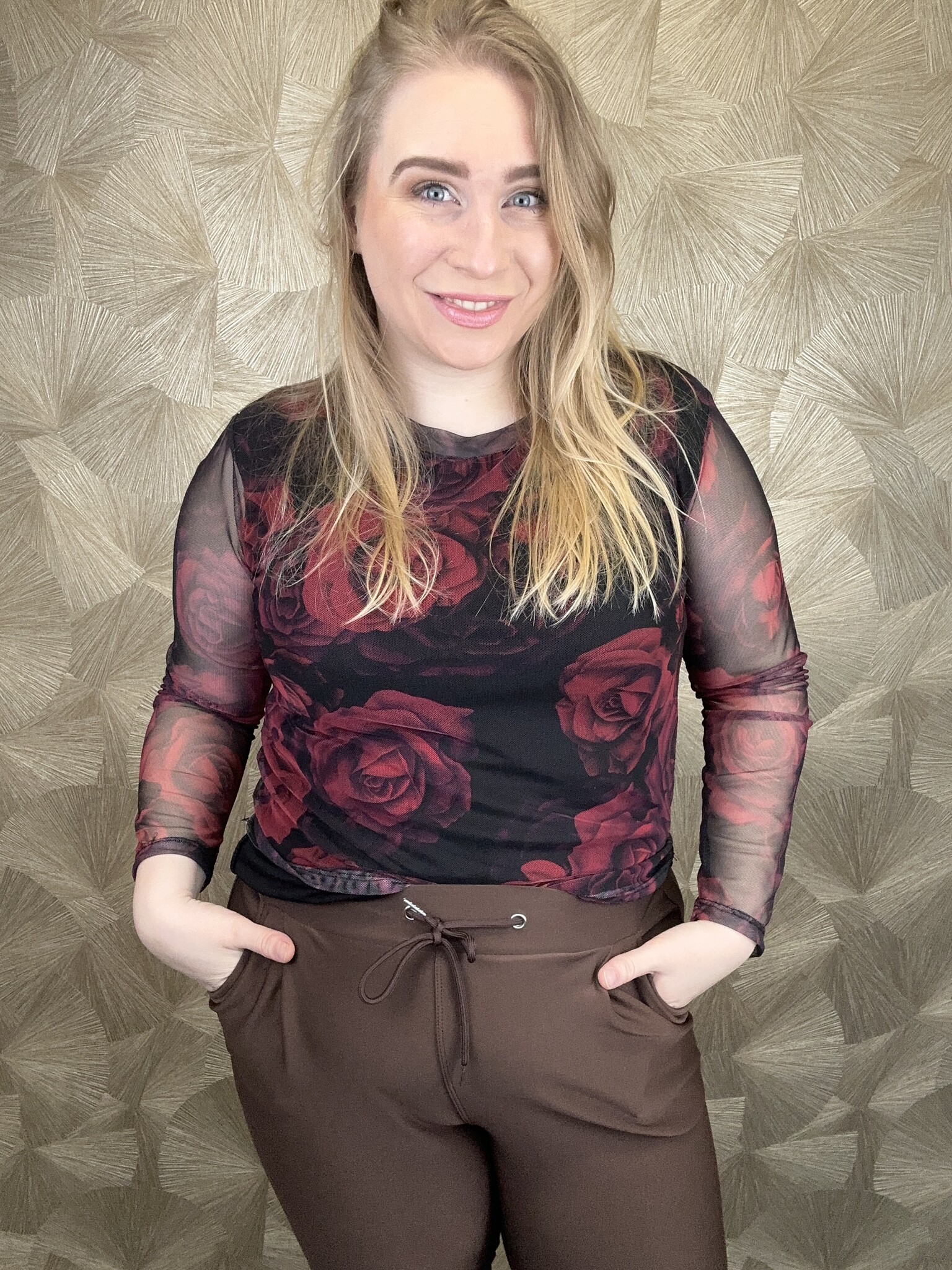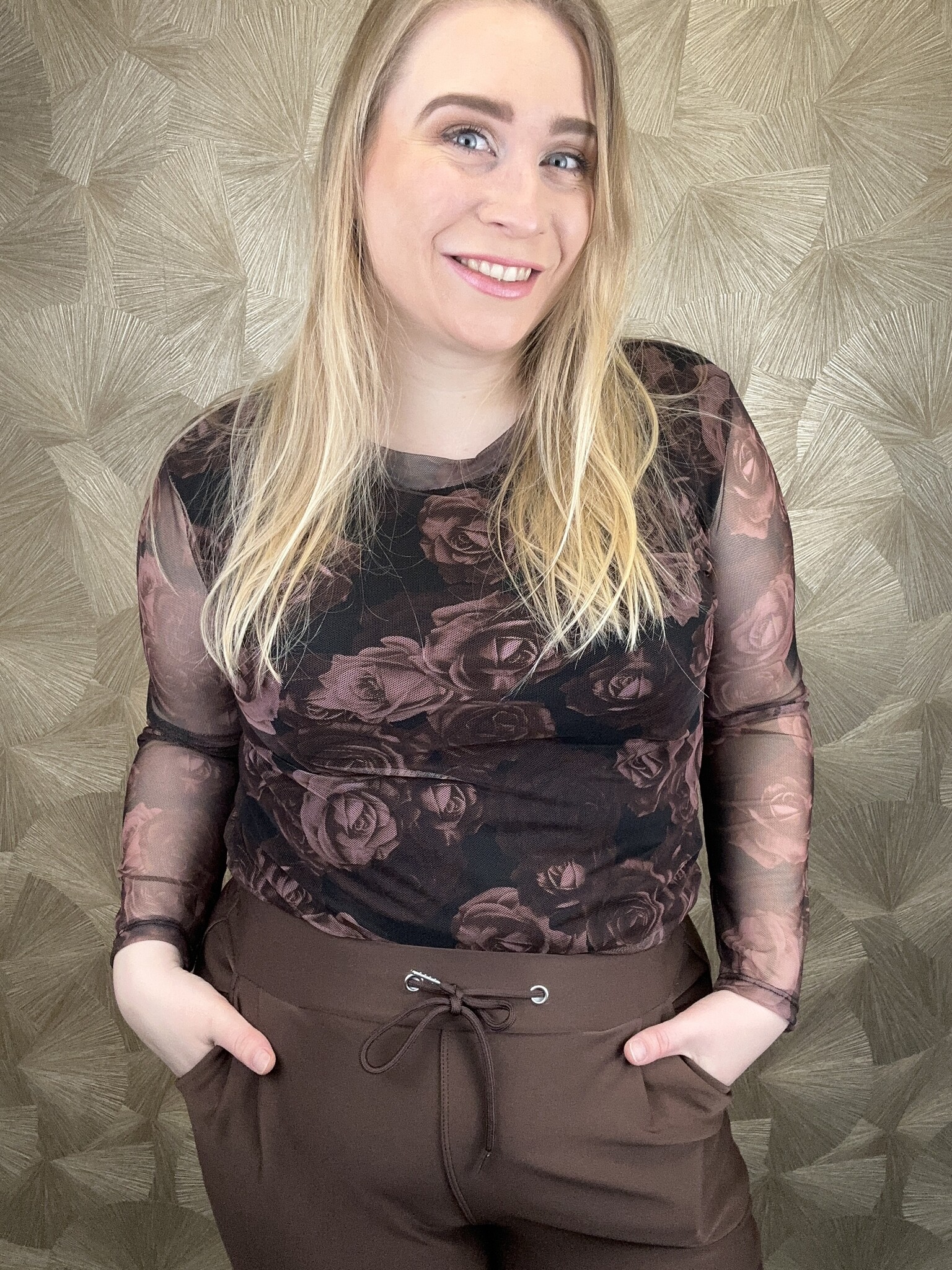 Prachtige mesh top met ingebouwd hemd, waardoor het niet doorschijn, alleen bij de armen.