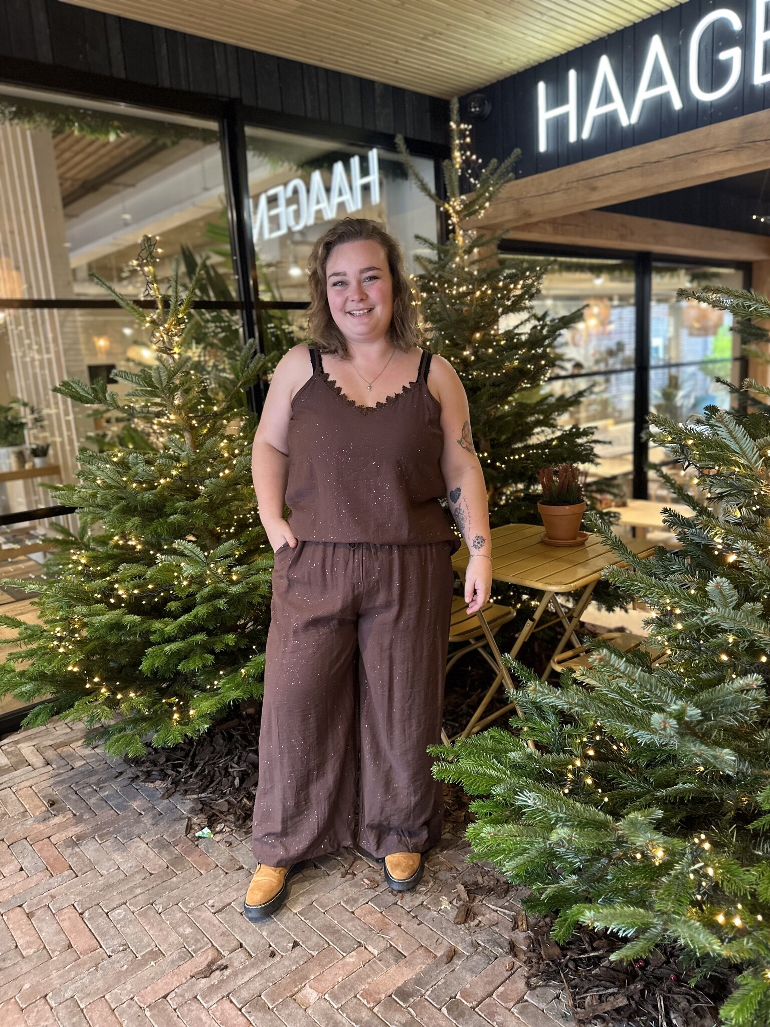 Super leuke top met glitter en kanten randje! Deze glitter zit echt in het stof en laat niet af.