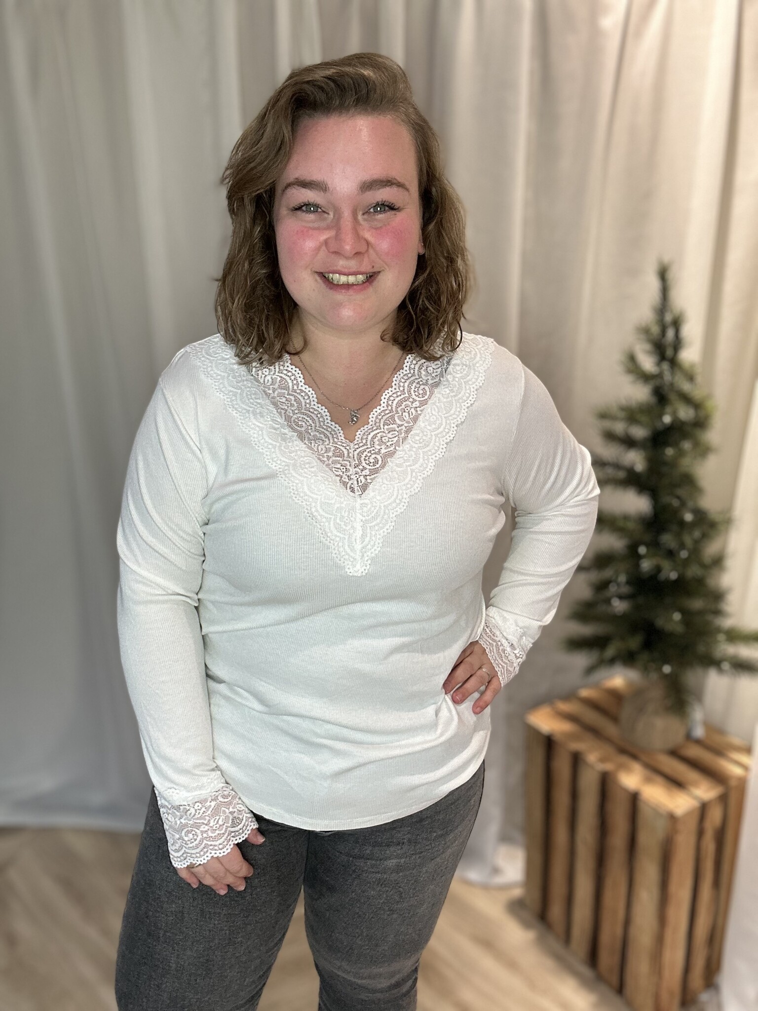 Verkrijgbaar in 6 mooie kleuren en voorzien van schitterende kantinzet bij de mouwen en halslijn. Perfect voor een elegante, vrouwelijke look. Het één maat, draagbaar van 42 tot een kleine 52, voor een stijlvolle en flatterende look voor iedereen.