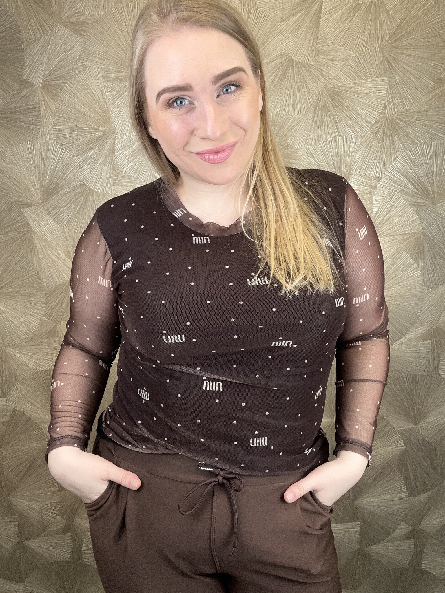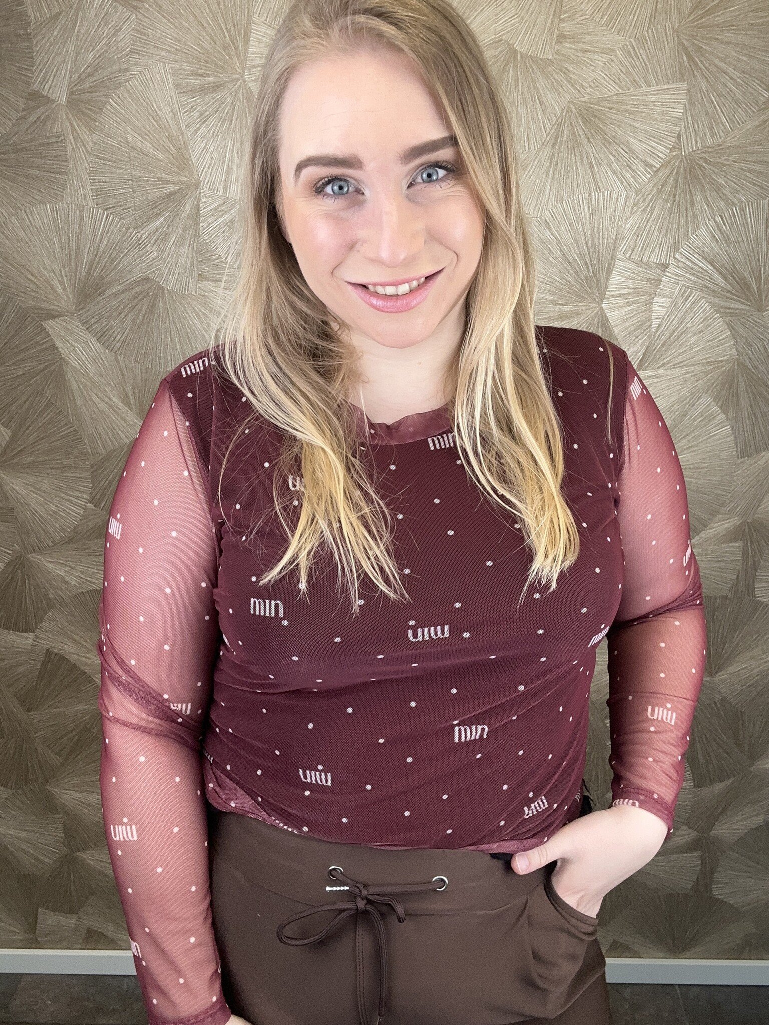 Prachtige mesh top met ingebouwd hemd, waardoor het niet doorschijn, alleen bij de armen.