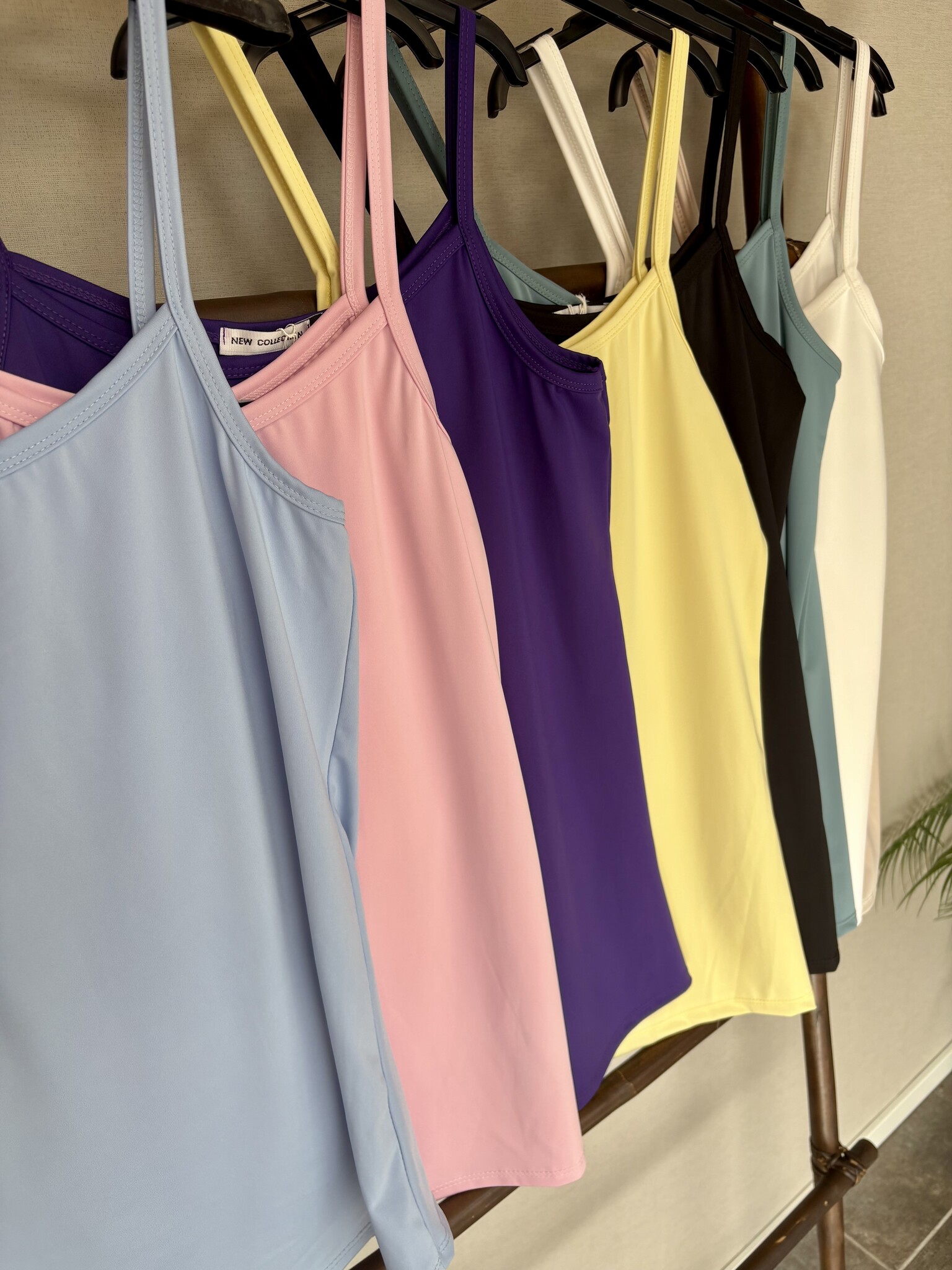 Deze top is beschikbaar in meerdere kleuren en heeft een aansluitende pasvorm. Gemaakt van een luchtige stof die zorgt voor een fijn draagcomfort. De top is afgewerkt met spaghettibandjes. Perfect te combineren met een blazer voor een nette look of perfect voor in de zomer!