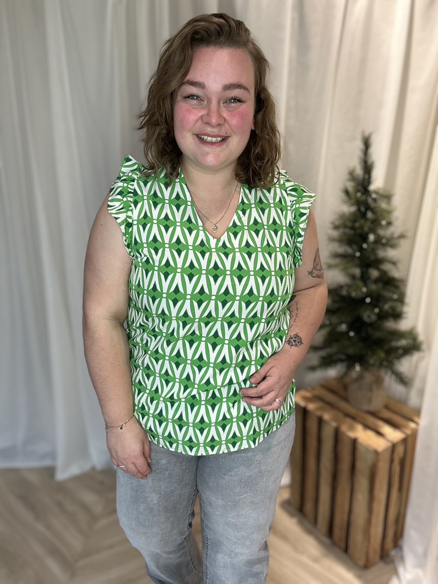 Beautyvol - Hele leuke top! Leuk voor onder een jasje of blazer of straks in het voorjaar ook leuk te dragen. Verkrijgbaar in 2 hele leuke kleuren, zowel in het groen als in het roze. De mouwen zijn voorzien van een roezel en hij valt goed op maat.