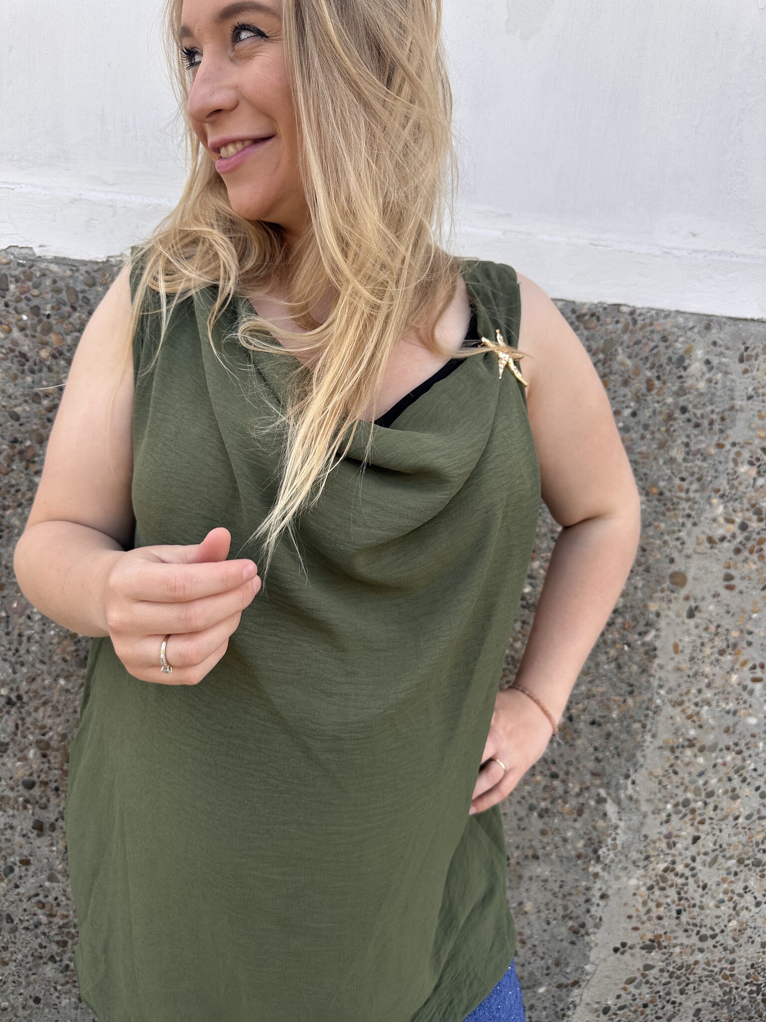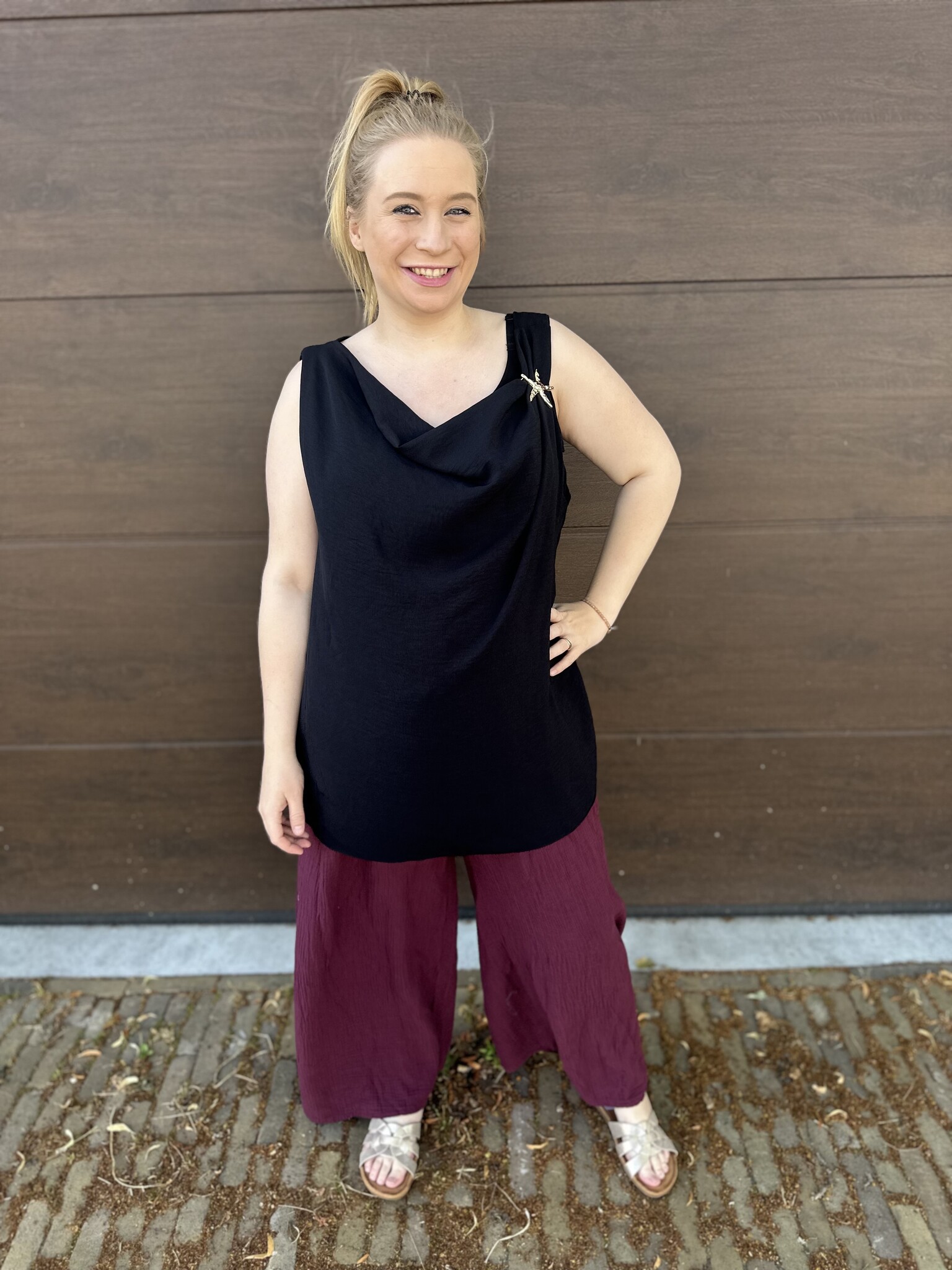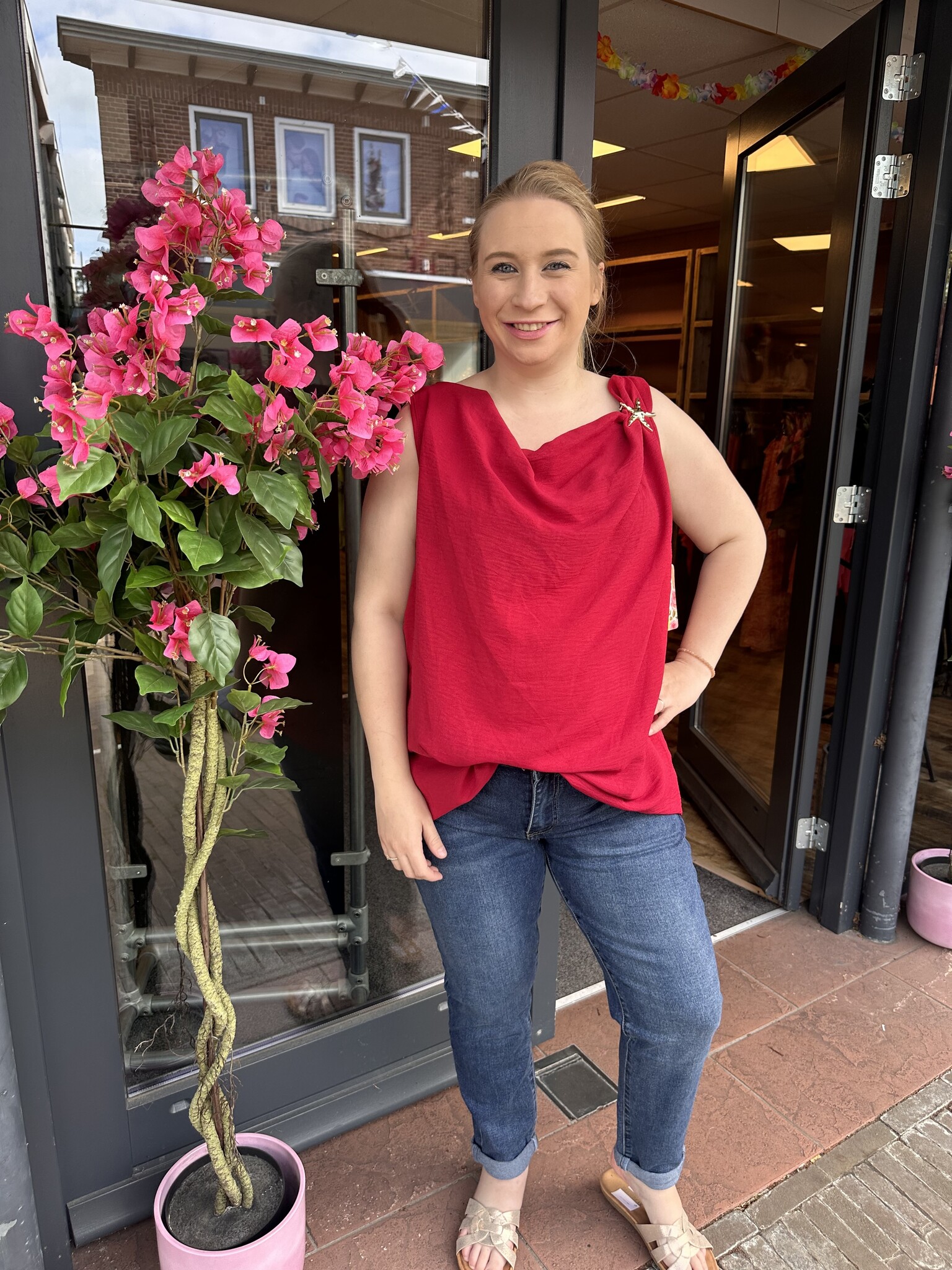 Super leuke top met ster op schouder, te dragen met maat 44 t/m 52
