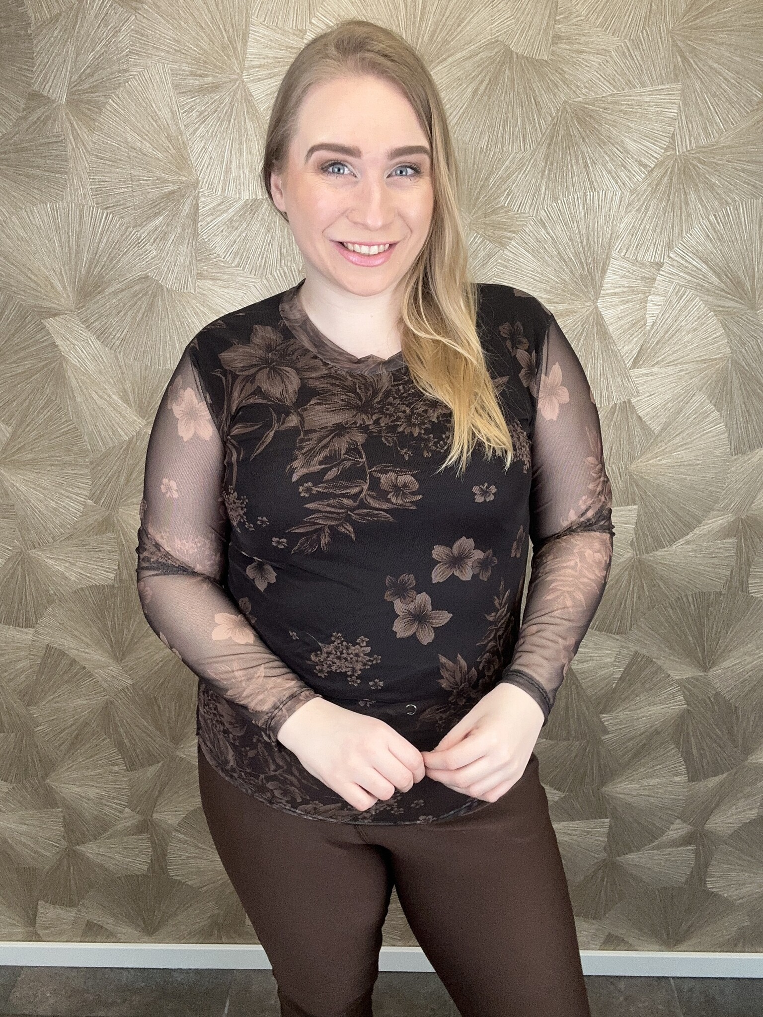 Prachtige mesh top met ingebouwd hemd, waardoor het niet doorschijn, alleen bij de armen.