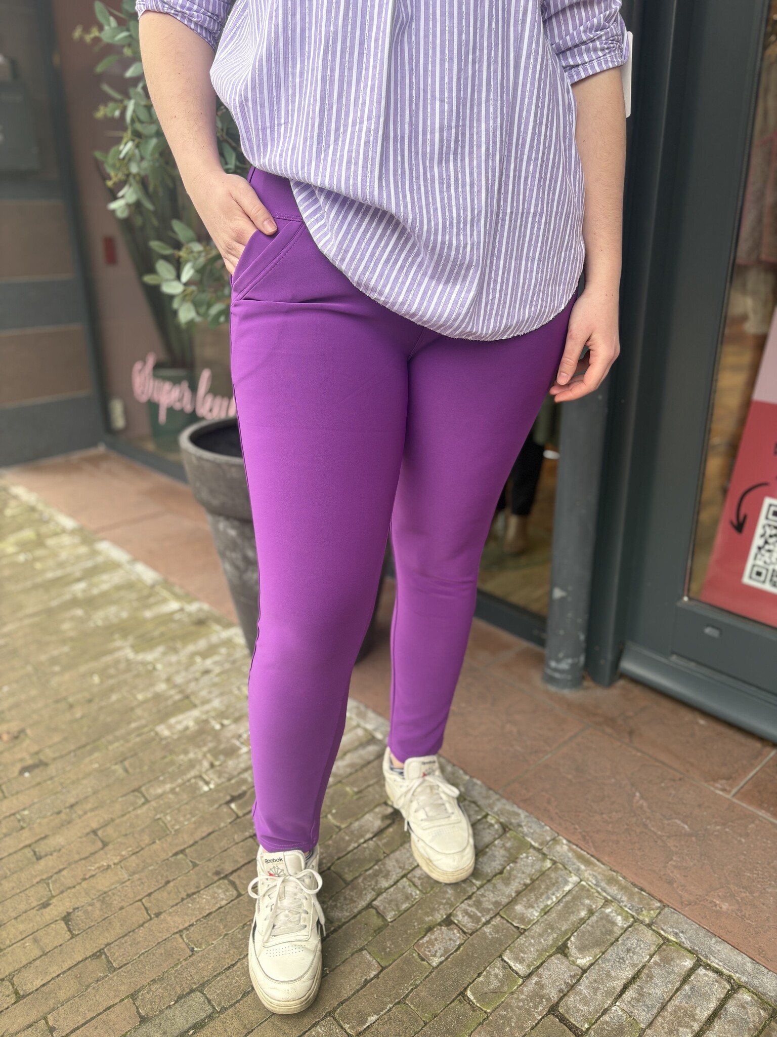 Geweldige leuke tregging met zakken voor en achter. In de super fijne ''Nynke-broek stof''. Deze kan gewoon niet ontbreken in jouw kast. Hij valt goed op maat.