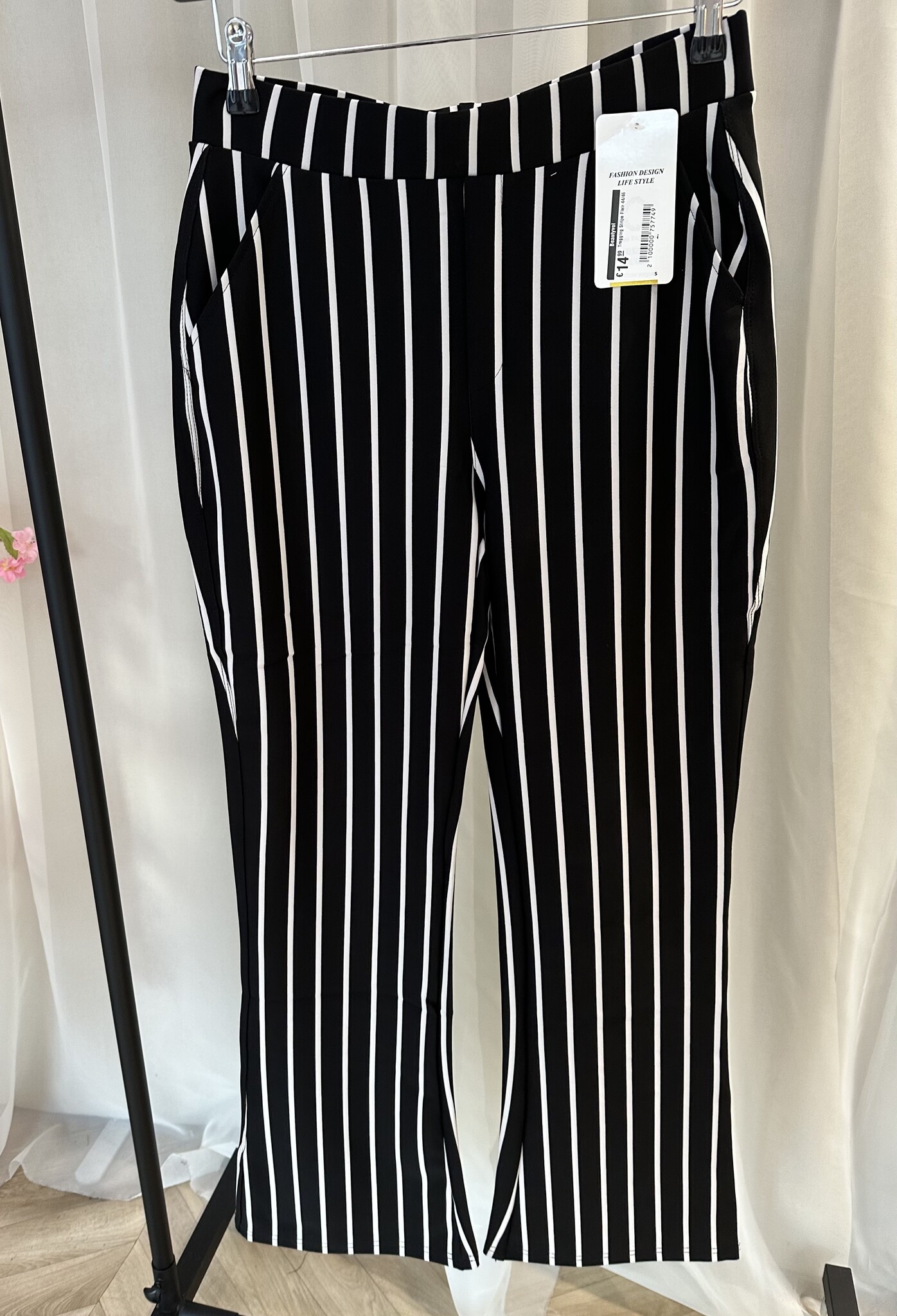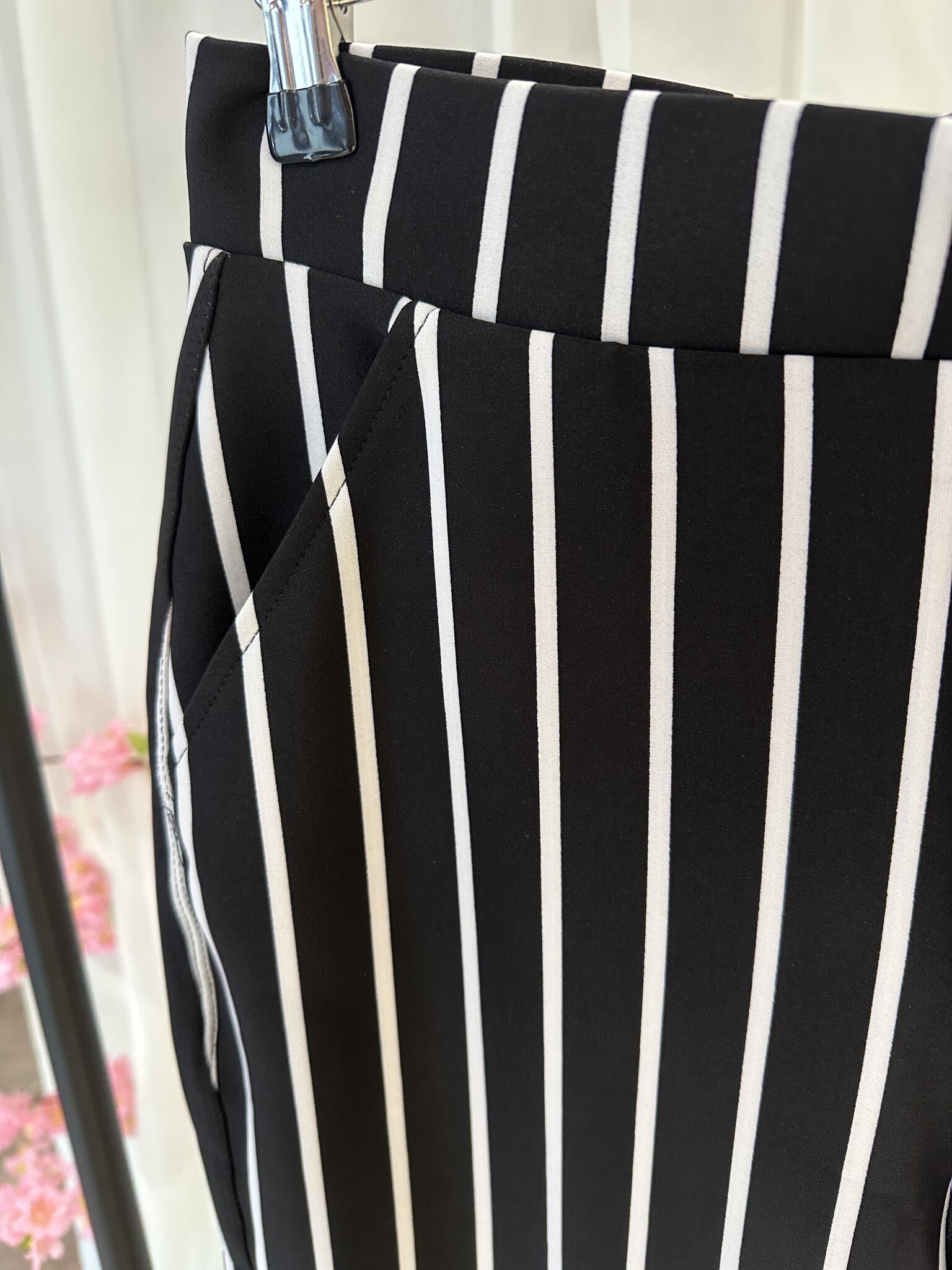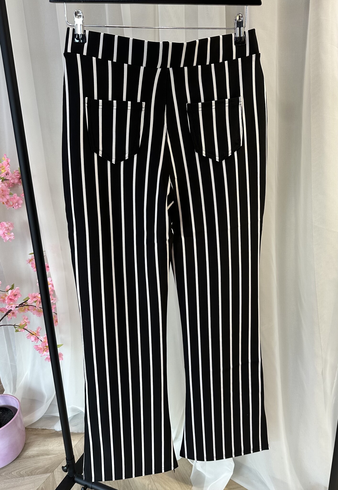 Deze superleuke gestreepte flared broek is gemaakt van comfortabele Nynke-broekstof en zit heerlijk hoog, wat een flatterende pasvorm geeft. De broek heeft een stijlvolle flare en dit super leuke gestreepte printje, waardoor hij direct opvalt.