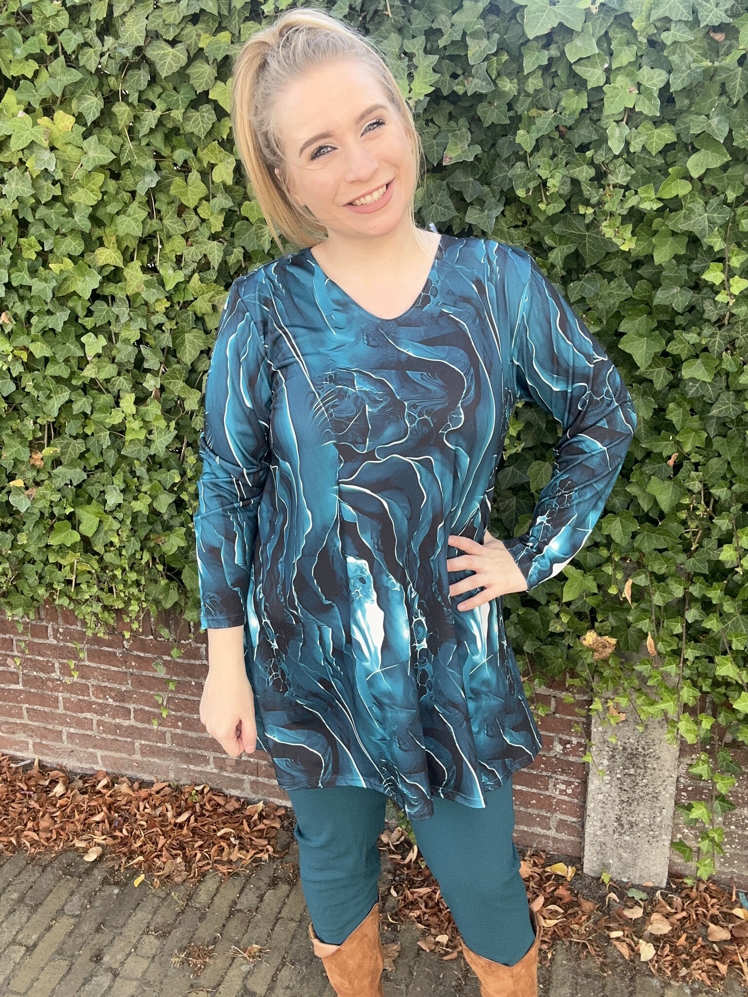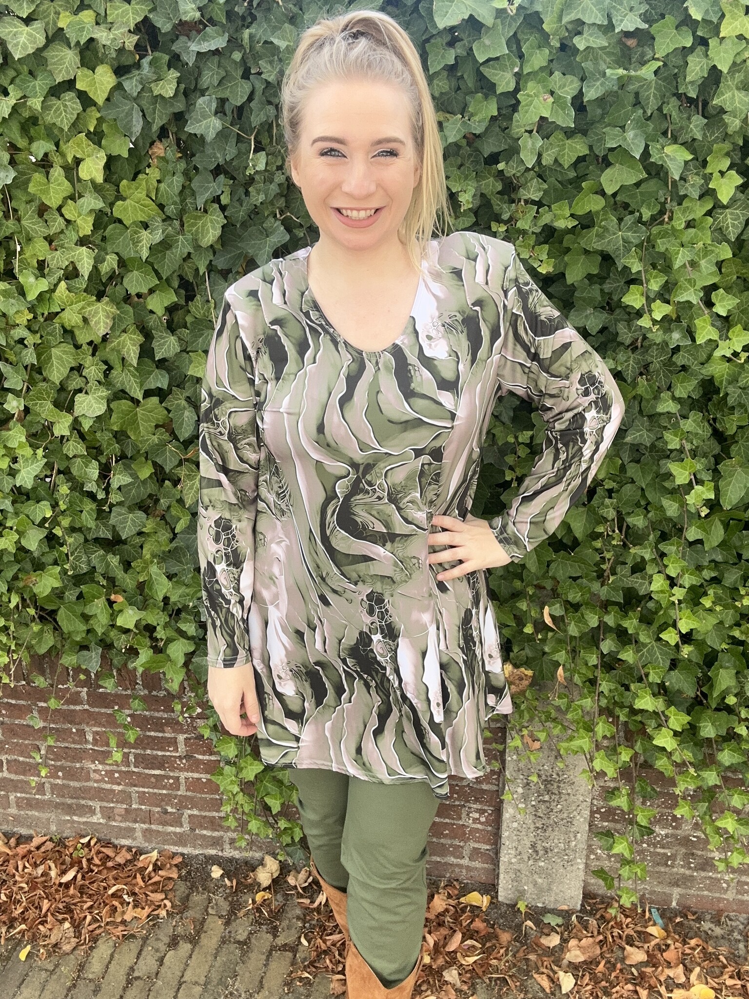 Magna Fashion - Super leuke tuniek met lange mouw en v-hals. De tuniek heeft een prachtig a-lijn model. De tuniek valt op maat.