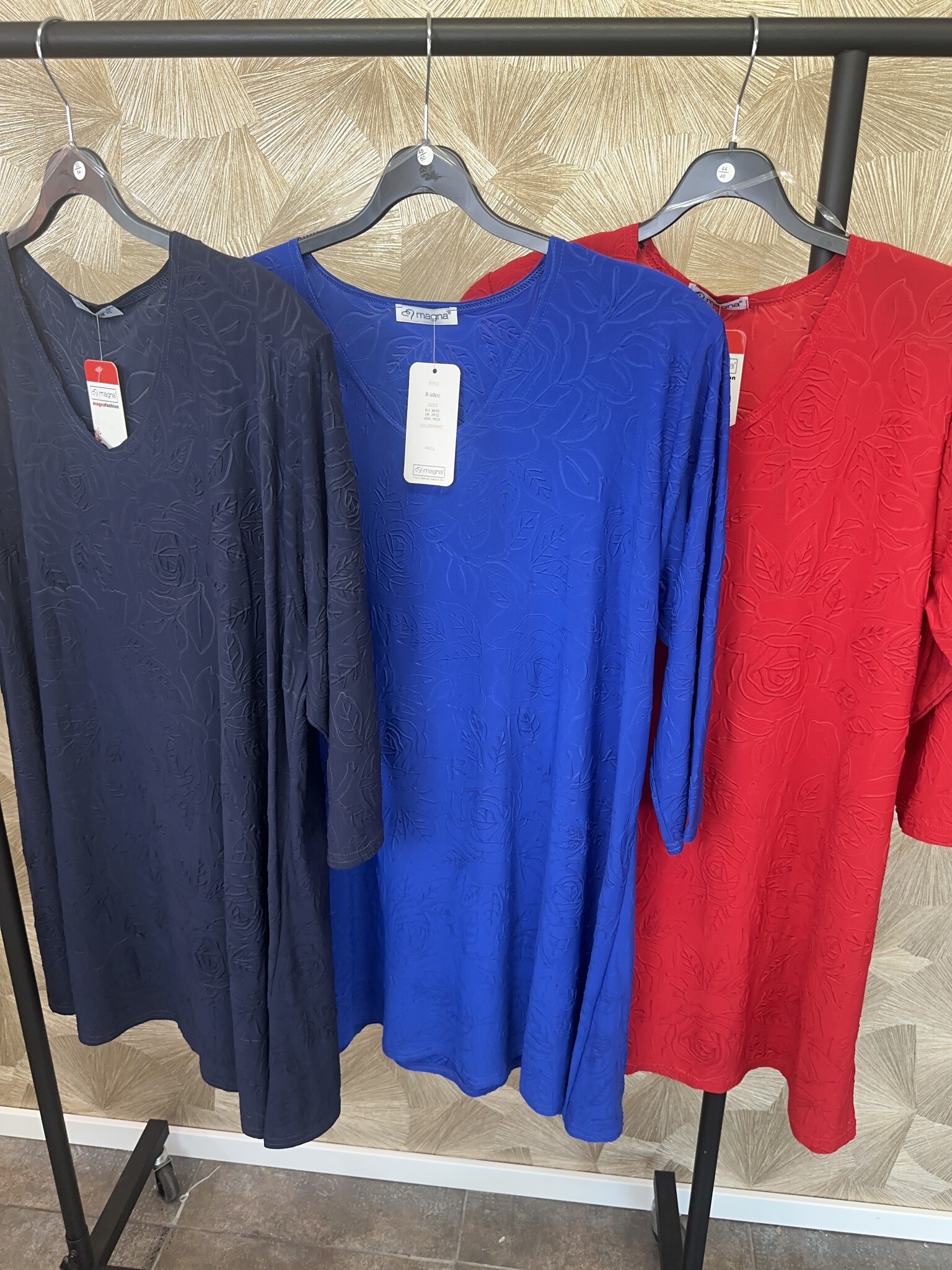 Tuniek Rosalie heeft een prachtige bloemenprint in reliëfpatroon. Dit geeft de blouse een chique effect zonder extra kleurverschil! Rosalie is beschikbaar in rood, blauw en donkerblauw. Het model van de blouse is B-6004 en heeft een V-hals, ¾-mouwen en een lange pasvorm.