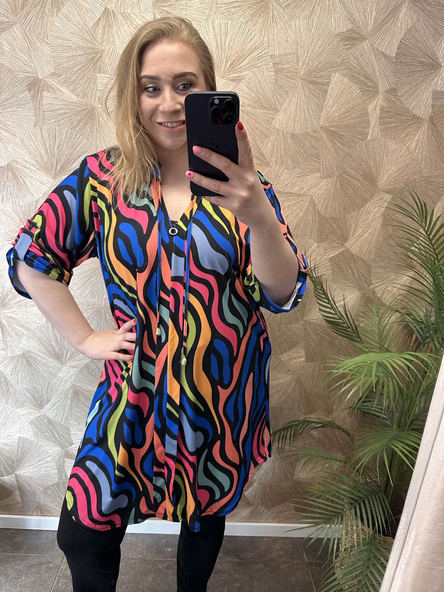Maatadvies: Dit tuniek valt groot, we raden aan om een maat kleiner te bestellen.
