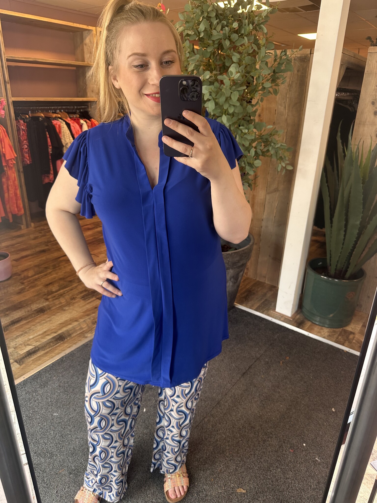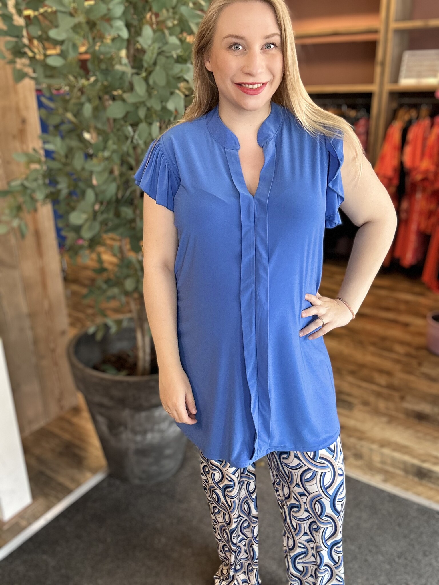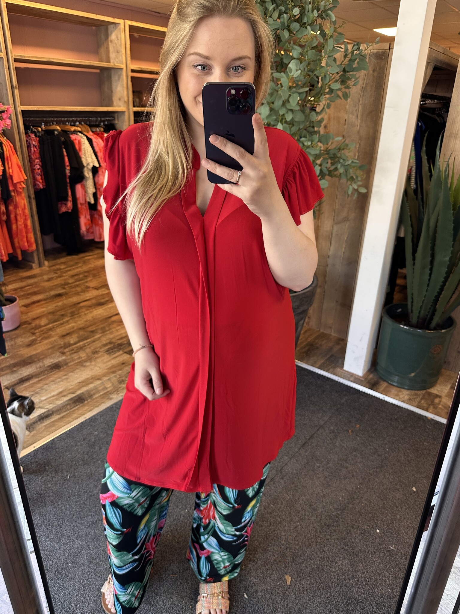 Super leuke tuniek van Magna fashion, met een mooie roesel bij de mouw. En hele leuke bies in het midden. Valt goed op maat.