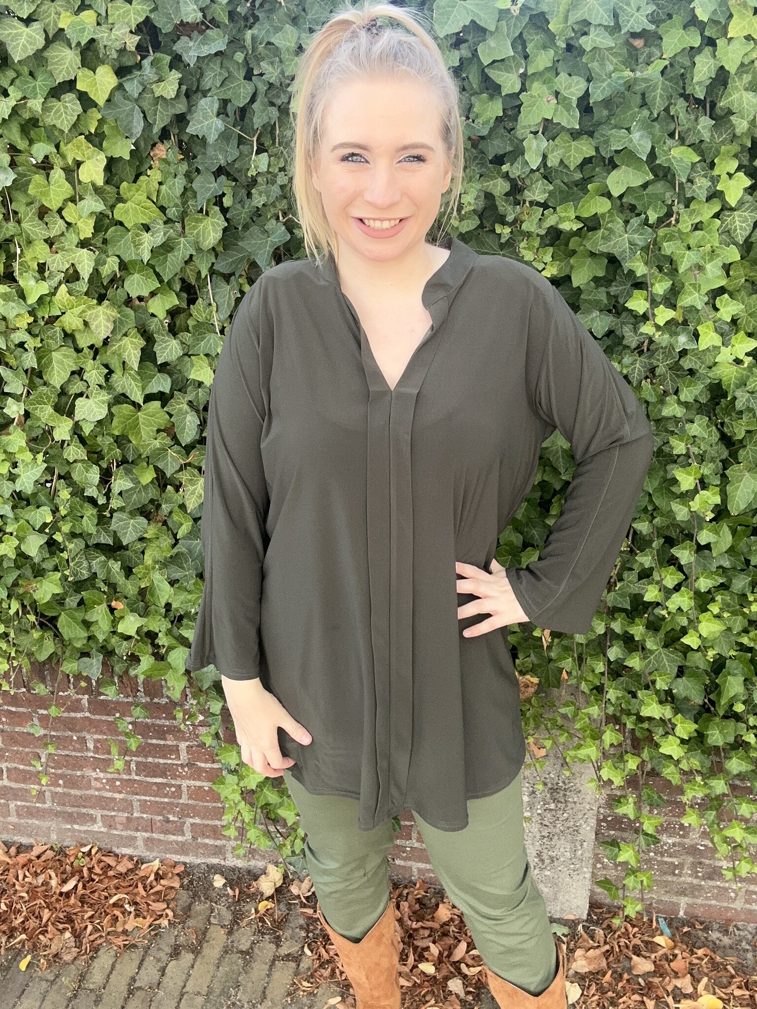 Magna Fashion - Super leuke tuniek met v-hals in prachtige effen kleuren. De tuniek heeft een prachtige bies die de buik verbloemd.