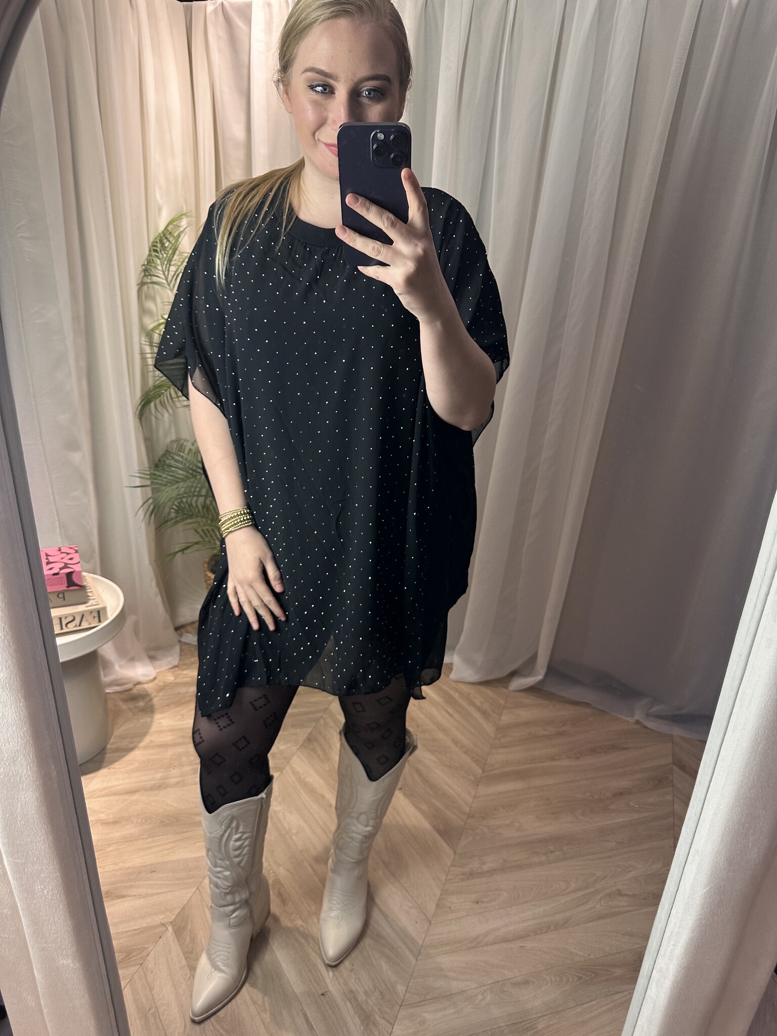 Prachtige glitter tuniek top, met een onder hemdje en een losse Voile stof.